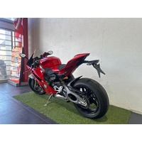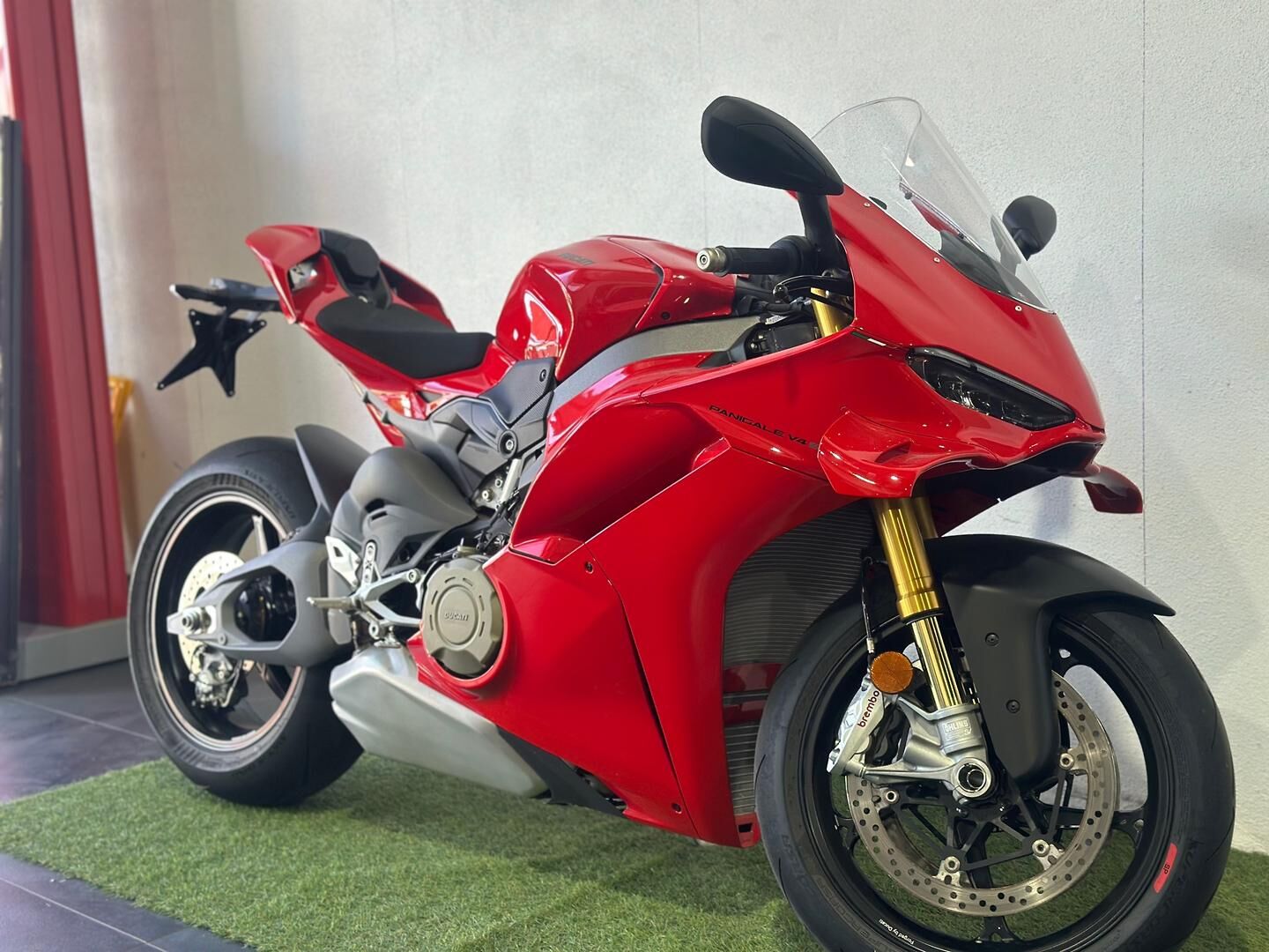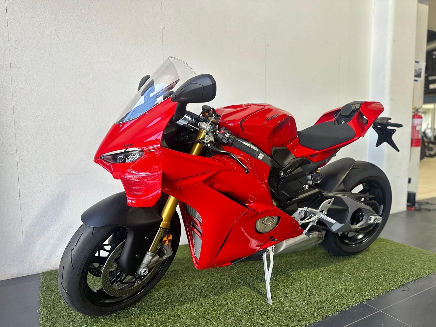 Experience the thrill of Italian performance with the 2025 Ducati Panigale V4S, now available at our trusted, family-owned dealership. Born from the track and refined for the road, the V4S is the pinnacle of Ducati engineering—featuring a Desmosedici Stradale engine, state-of-the-art electronics, and Öhlins Smart EC 2.0 suspension for precision handling and jaw-dropping speed. This isn't just a motorcycle; it's a statement. Every detail of the 2025 Panigale V4S is designed to deliver an unmatched riding experience, whether you're carving canyons or pushing limits on the track. With aerodynamic upgrades, improved ride ergonomics, and the unmistakable roar of Ducati performance, the V4S raises the bar once again. As a family-owned business, we believe in building relationships. When you visit us, you're more than a customer—you’re part of our riding community. Our knowledgeable team is here to guide you through every step, from selecting the right model to customising your Ducati experience. We also offer financing options to help make your dream bike a reality. Let us find a plan that fits your budget and gets you on the road faster. Stop in today!