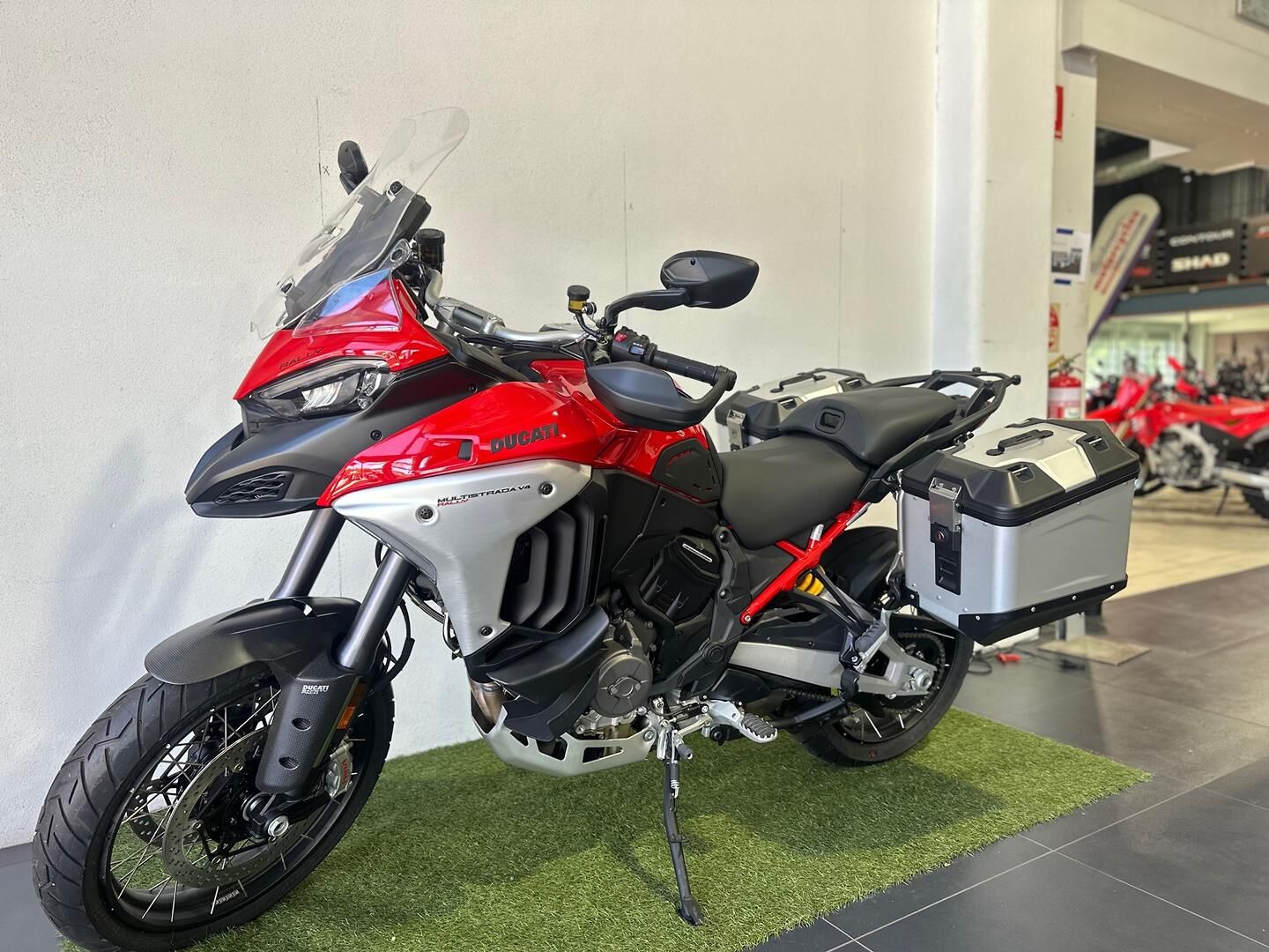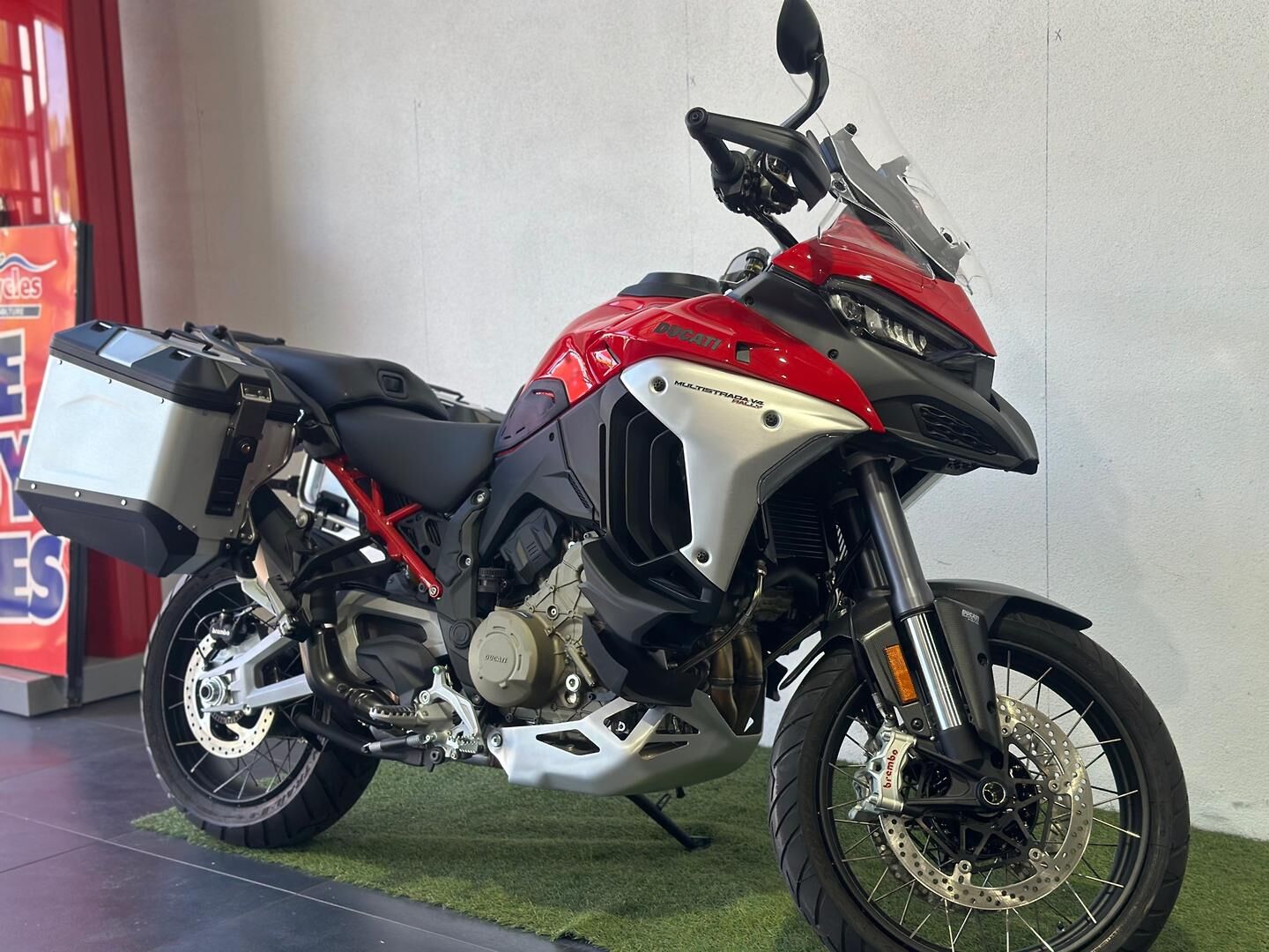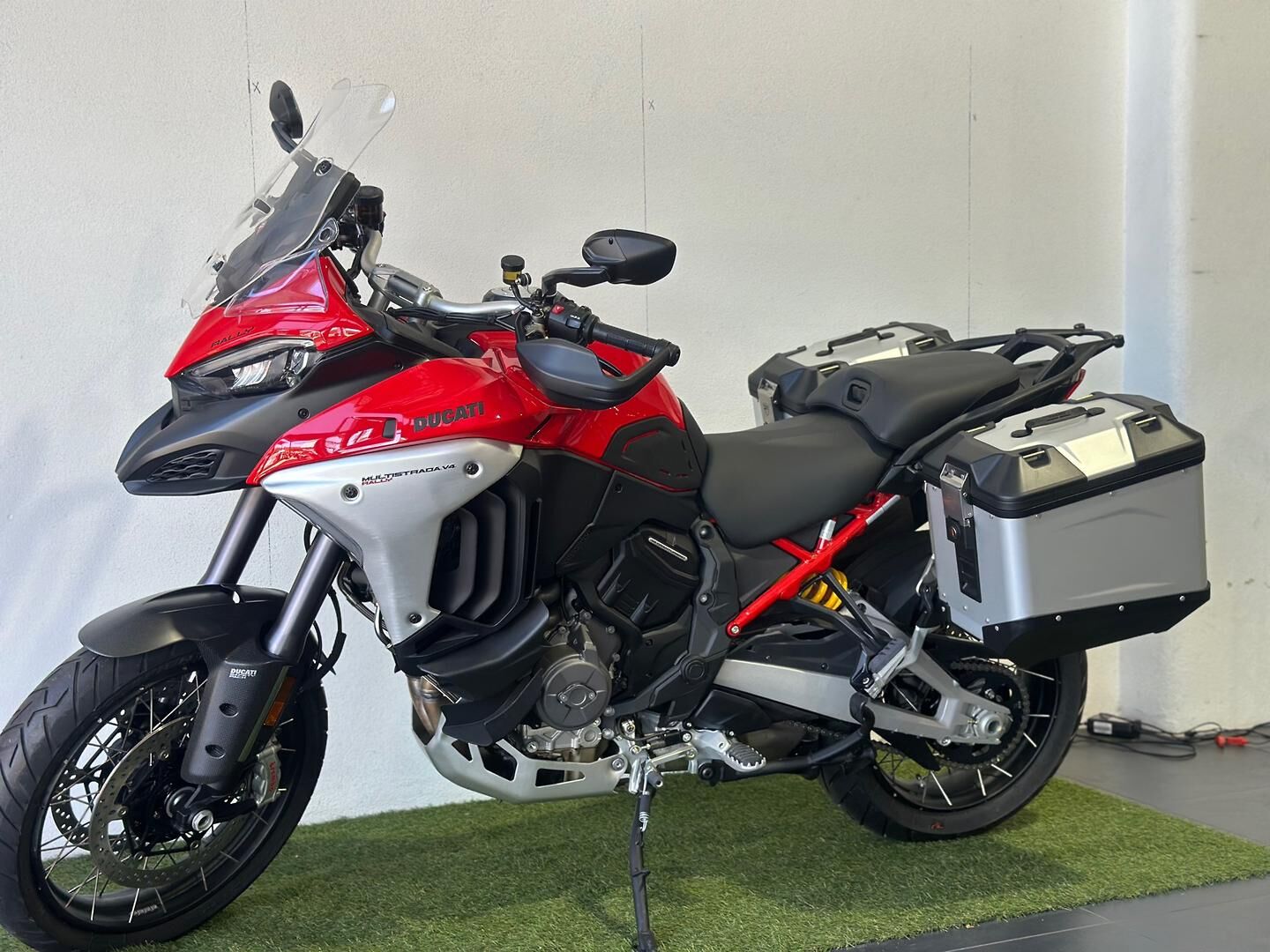Ducati Multistrada V4 Rally – Practically New | Only 141km The V4 full comes complete with a carbon front mud guard, Akrapovic slip on exhaust, radar adaptive cruise control and blind spot mitigation, heated seats and grips and center stand. This Ducati Multistrada V4 Rally is as close to new as it gets, with just 141 kilometres on the clock. Built for long-distance comfort and serious adventure, the V4 Rally combines Ducati performance with outstanding touring capability. Powered by the V4 Granturismo engine, it delivers smooth, effortless power with impressive efficiency. Features include semi-active electronic suspension for supreme comfort on any road, adaptive cruise control for relaxed highway touring, and a large-capacity 30 litre fuel tank designed for extended journeys. This bike presents beautifully and is ready to ride away today. We are a family-owned business, committed to friendly, honest service. For your convenience, we can assist with competitive finance options, insurance, and extended warranty packages, tailored to suit your needs. Enquire now to secure this exceptional Multistrada V4 Rally before it’s gone. Ducati Multistrada V4 Rally – Practically New | Only 141km The V4 full comes complete with a carbon front mud guard, Akrapovic slip on exhaust, radar adaptive cruise control and blind spot mitigation, heated seats and grips and center stand. This Ducati Multistrada V4 Rally is as close to new as it gets, with just 141 kilometres on the clock. Built for long-distance comfort and serious adventure, the V4 Rally combines Ducati performance with outstanding touring capability. Powered by the V4 Granturismo engine, it delivers smooth, effortless power with impressive efficiency. Features include semi-active electronic suspension for supreme comfort on any road, adaptive cruise control for relaxed highway touring, and a large-capacity 30 litre fuel tank designed for extended journeys. This bike presents beautifully and is ready to ride away today. We are a family-owned business, committed to friendly, honest service. For your convenience, we can assist with competitive finance options, insurance, and extended warranty packages, tailored to suit your needs. Enquire now to secure this exceptional Multistrada V4 Rally before it’s gone.