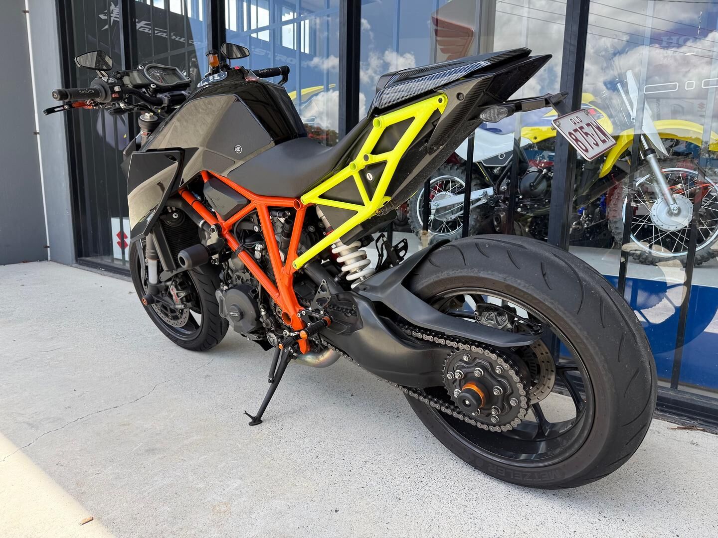 Welcome to this 2015 KTM 1290 Super Duke R in black done 54,439km. This high performance 1290cc V-Twin naked street bike has the option of up to a THREE YEAR COMPREHENSIVE WARRANTY. The 2015 KTM 1290 Super Duke R in black is a striking example of KTM’s legendary naked performance, showing 54,439km and still presenting with immense presence and character. Powered by its iconic 1301cc V-twin, this machine delivers exhilarating, instant torque and a riding experience that feels raw yet refined. The black finish perfectly complements the aggressive styling, giving the bike a purposeful, muscular stance that reflects its reputation as one of the most exciting streetfighters ever produced. This Super Duke R comes well equipped with desirable upgrades that enhance both performance and aesthetics. Crash knobs add practical protection, while the quick shifter provides seamless, clutchless gear changes for a truly engaging ride. The SC Project full system, complete with performance pipe and race headers, not only sharpens the bike’s performance but also gives it an unmistakable soundtrack to match its attitude. Finished off with various carbon fibre pieces, this 1290 Super Duke R stands as a beautifully set-up, high-spec example of a modern performance icon. We are Brisbane's Number 1 FAMILY OWNED dealership! We have a huge range of accessories in store and on-line, making us truly your ultimate one stop shop. We are a family owned business with an outstanding reputation. Find out why our customers prefer to deal with us for all of their bike needs. Interstate? No worries! We can deliver to Sydney, Melbourne, Newcastle, Tasmania, Adelaide, Perth and anywhere in between for a discounted rate. We also have great rates to the Sunshine Coast, Gold Coast. COMPREHENSIVE WARRANTIES available, just ask! Ask about our finance options that will make this bike extremely affordable. Same Day Bank Finance with competitive rates. All loan types for all types of workers; Full time, Part time, Casual, Self or short term employed. We'll do our best to get you the best package. We can even source loans for clients on defence force pensions or self-funded retirees. If you're on a government pension or government assistance, we may still be able to assist you with our strong relationships with Brisbane based broker network that can come to you and at affordable payments. FREE Pre-Approvals and Quotes in store, over the phone or online. We work for you! You're in control; we structure your loan to your requests, not the bank telling you how it's going to be. We structure your loan term and repayments to suit your needs and circumstances. One of Brisbane & Sunshine Coasts Largest Dealership Groups. Stocking NEW Yamaha, Honda, Ducati, KTM, Kawasaki, Husqvarna, Vespa, Moto Guzzi, Paggio, Aprilia, Sym, and Suzuki Motorbikes, as well as a huge selection of pre-owned bikes of many brands including Harley Davidson, Triumph, BMW, KTM the list goes on! Fully functioning and experienced workshop and an extensive range of accessories and parts with all the major brands, with the latest stock and technology. Easy to find locations in Windsor, and Ipswich. Plenty of on-site parking and close to public transport. Personalised fully insured delivery to your front door within many South-East Queensland areas as well as discounted Australia wide Delivery, in most cases to your front door. Call and enter the bike code to the right of the screen or Email us with the form to your right.