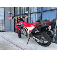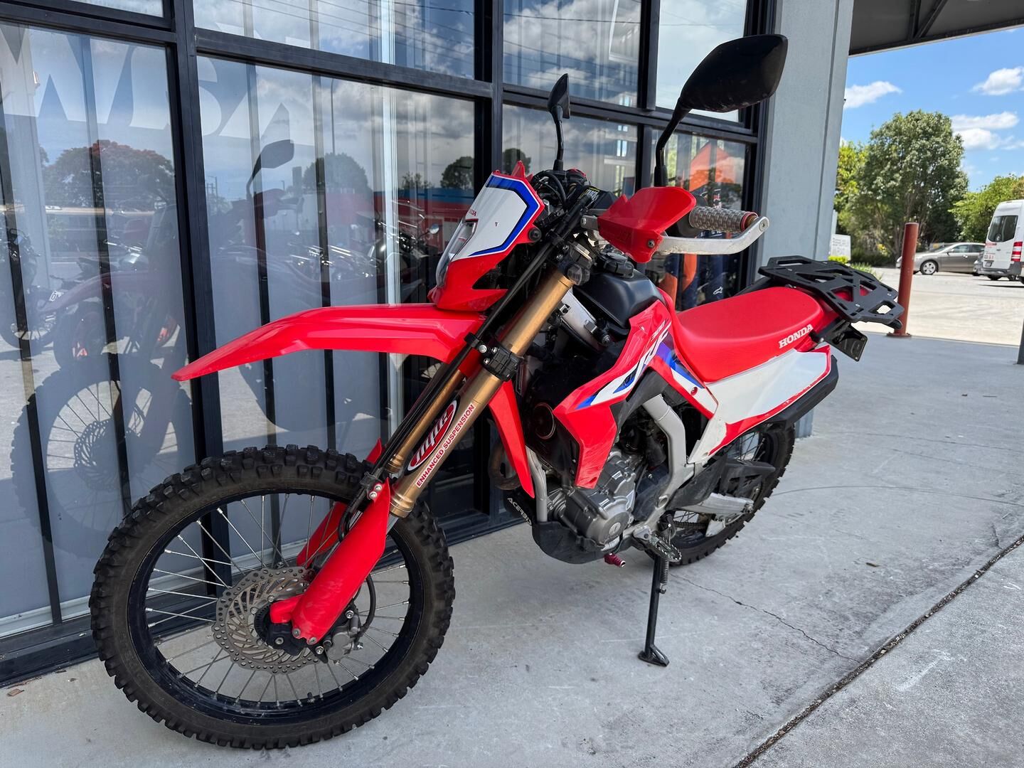 Welcome to this 2019 Honda CRF250L in red and white done only 3,736km. This LEARNER APPROVED 250cc road/trail bike has the option of up to a THREE YEAR COMPREHENSIVE WARRANTY. The 2023 Honda CRF300L in its vibrant red and white colourway and with just 3,736 km on the clock is a wonderfully capable and engaging dual-sport motorcycle. Honda’s refined 300 cc powerplant delivers a smooth, responsive ride with ample torque throughout the rev range, making it perfectly at home in both urban traffic and on open country roads. Its lightweight chassis and balanced geometry give it confidence-inspiring handling, whether you’re carving through twisties or navigating more technical terrain. The red and white graphics pop in the sunlight, reflecting both its heritage and Honda’s attention to style and detail. Comfort is a standout on the CRF300L, with an upright riding position and thoughtfully designed ergonomics that make longer journeys a pleasure. The suspension setup offers a great blend of support and compliance, smoothly absorbing road imperfections while maintaining precise control. With just 3,736 km traveled, this example feels nearly new—brakes feel crisp, controls are beautifully intuitive, and the bike responds instantly to rider input. If you’re after a reliable, versatile, and fun motorcycle that handles a wide variety of riding conditions with ease, this 2023 Honda CRF300L in red and white is an excellent choice that embodies Honda’s engineering excellence. We are Brisbane's Number 1 FAMILY OWNED dealership! We have a huge range of accessories in store and on-line, making us truly your ultimate one stop shop. We are a family owned business with an outstanding reputation. Find out why our customers prefer to deal with us for all of their bike needs. Interstate? No worries! We can deliver to Sydney, Melbourne, Newcastle, Tasmania, Adelaide, Perth and anywhere in between for a discounted rate. We also have great rates to the Sunshine Coast, Gold Coast. COMPREHENSIVE WARRANTIES available, just ask! Ask about our finance options that will make this bike extremely affordable. Same Day Bank Finance with competitive rates. All loan types for all types of workers; Full time, Part time, Casual, Self or short term employed. We'll do our best to get you the best package. We can even source loans for clients on defence force pensions or self-funded retirees. If you're on a government pension or government assistance, we may still be able to assist you with our strong relationships with Brisbane based broker network that can come to you and at affordable payments. FREE Pre-Approvals and Quotes in store, over the phone or online. We work for you! You're in control; we structure your loan to your requests, not the bank telling you how it's going to be. We structure your loan term and repayments to suit your needs and circumstances. One of Brisbane & Sunshine Coasts Largest Dealership Groups. Stocking NEW Yamaha, Honda, Ducati, KTM, Kawasaki, Husqvarna, Vespa, Moto Guzzi, Paggio, Aprilia, Sym, and Suzuki Motorbikes, as well as a huge selection of pre-owned bikes of many brands including Harley Davidson, Triumph, BMW, KTM the list goes on! Fully functioning and experienced workshop and an extensive range of accessories and parts with all the major brands, with the latest stock and technology. Easy to find locations in Windsor, and Ipswich. Plenty of on-site parking and close to public transport. Personalised fully insured delivery to your front door within many South-East Queensland areas as well as discounted Australia wide Delivery, in most cases to your front door. Call and enter the bike code to the right of the screen or Email us with the form to your right.