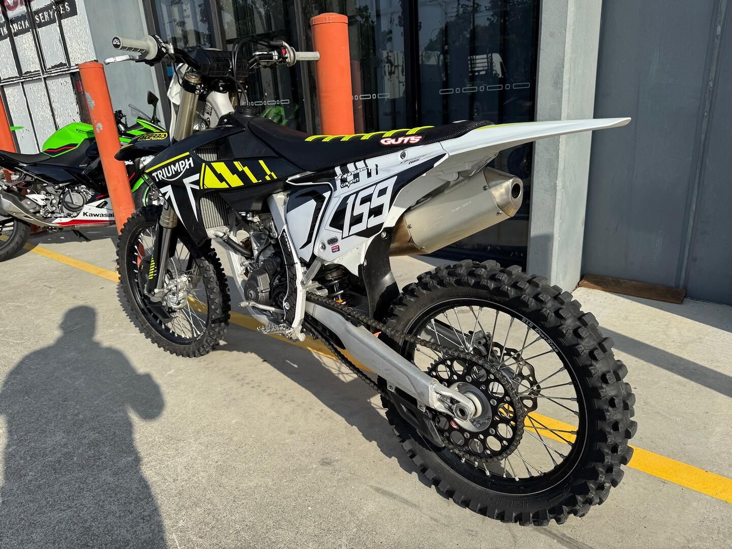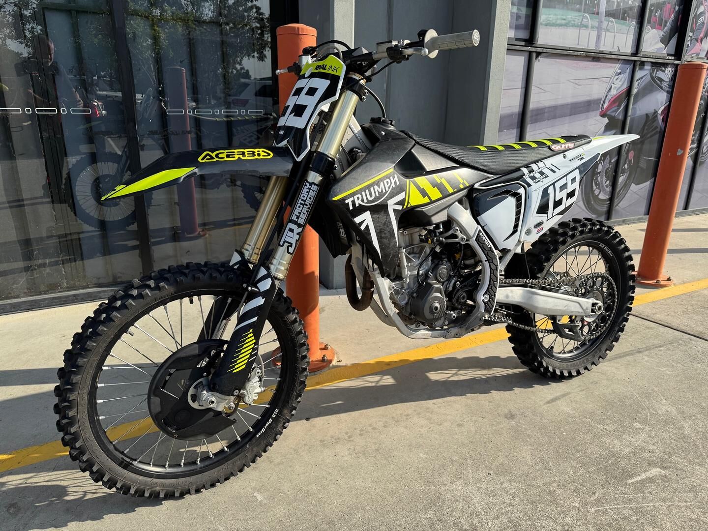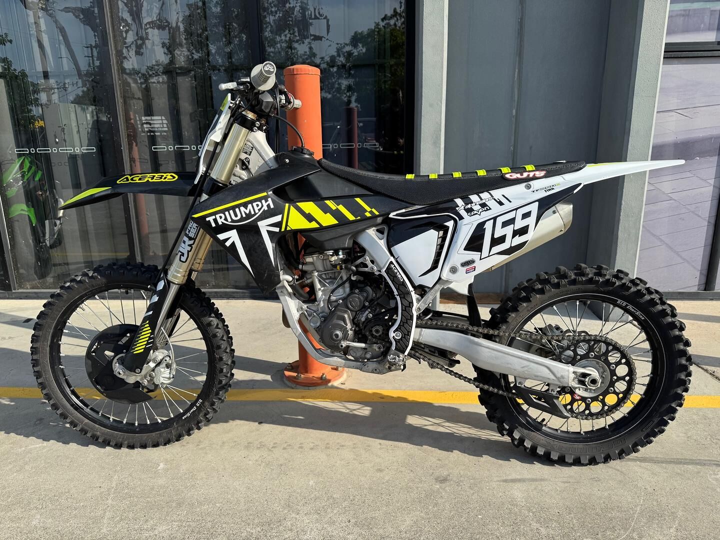 Welcome to this 2024 Triumph TF 250-X in white done 43 hours. The 2024 Triumph TF 250-X presented in crisp white and black with just 43 hours on the clock is an absolute standout in the 250cc class. From the moment you throw a leg over, you sense the premium build quality — the aluminium spine-and-double-cradle frame alone gives the machine a poised, race-ready feel. With a liquid-cooled 249.95 cc single cylinder, 5-speed gearbox, Brembo hydraulic clutch and race-spec components throughout, it’s engineered for purpose and performance. On the track or off-road, this TF 250-X impresses thanks to its light wet weight (just 104 kg) and linear torque delivery that behaves consistently throughout the rev-range. The white-finish machine with its premium suspension (KYB 48 mm AOS coil fork, adjustable KYB piggy-back rear shock), Pirelli MX32 tyres and top-tier braking earns big points for agility and control. Every time you twist the throttle, you feel the refinement of the design and the sharpness of the build — this is a serious machine for riders who appreciate engineering excellence, style and substance all wrapped into one. We are Brisbane's Number 1 FAMILY OWNED dealership! We have a huge range of accessories in store and on-line, making us truly your ultimate one stop shop. We are a family owned business with an outstanding reputation. Find out why our customers prefer to deal with us for all of their bike needs. Interstate? No worries! We can deliver to Sydney, Melbourne, Newcastle, Tasmania, Adelaide, Perth and anywhere in between for a discounted rate. We also have great rates to the Sunshine Coast, Gold Coast. COMPREHENSIVE WARRANTIES available, just ask! Ask about our finance options that will make this bike extremely affordable. Same Day Bank Finance with competitive rates. All loan types for all types of workers; Full time, Part time, Casual, Self or short term employed. We'll do our best to get you the best package. We can even source loans for clients on defence force pensions or self-funded retirees. If you're on a government pension or government assistance, we may still be able to assist you with our strong relationships with Brisbane based broker network that can come to you and at affordable payments. FREE Pre-Approvals and Quotes in store, over the phone or online. We work for you! You're in control; we structure your loan to your requests, not the bank telling you how it's going to be. We structure your loan term and repayments to suit your needs and circumstances. One of Brisbane & Sunshine Coasts Largest Dealership Groups. Stocking NEW Yamaha, Honda, Ducati, KTM, Kawasaki, Husqvarna, Vespa, Moto Guzzi, Paggio, Aprilia, Sym, and Suzuki Motorbikes, as well as a huge selection of pre-owned bikes of many brands including Harley Davidson, Triumph, BMW, KTM the list goes on! Fully functioning and experienced workshop and an extensive range of accessories and parts with all the major brands, with the latest stock and technology. Easy to find locations in Windsor, and Ipswich. Plenty of on-site parking and close to public transport. Personalised fully insured delivery to your front door within many South-East Queensland areas as well as discounted Australia wide Delivery, in most cases to your front door. Call and enter the bike code to the right of the screen or Email us with the form to your right.