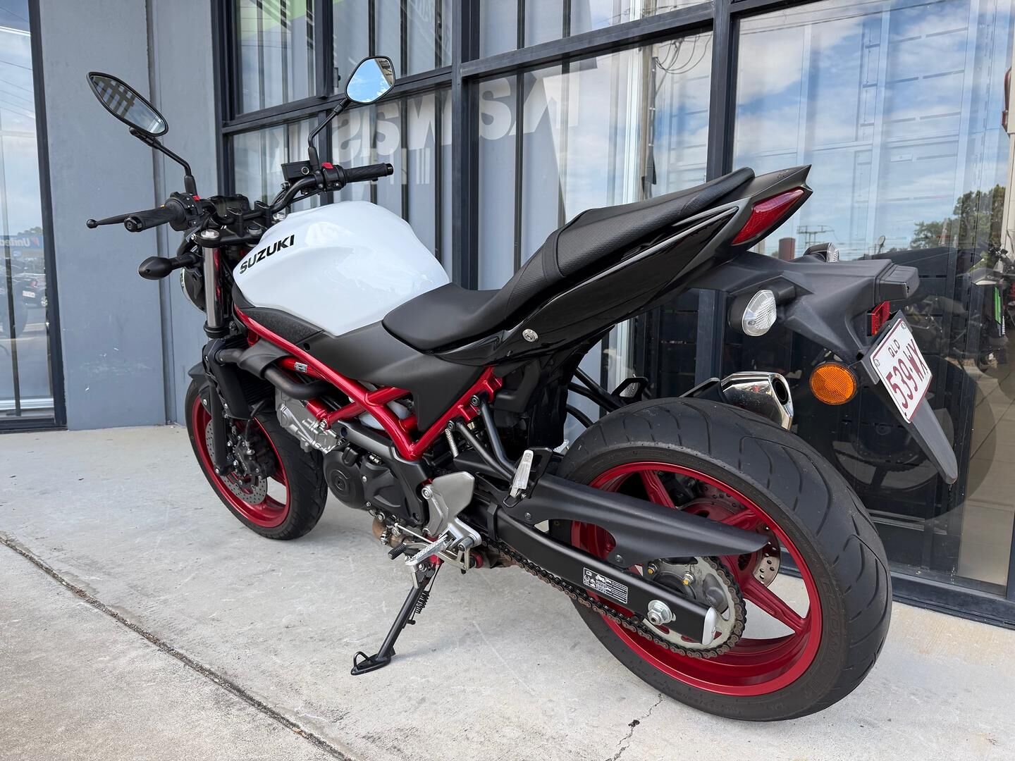 Welcome to this 2022 year model SV650 ABS LAMS in white done 4,517km. This 650cc V-Twin Learner approved motorcycle has the option of up to a THREE YEAR COMPREHENSIVE WARRANTY. The 2022 Suzuki SV650 LAMS ABS in white with just 4,517 km on the clock is a true standout in the mid-weight motorcycle segment, blending style with spirited performance. From the moment you swing a leg over the supportive seat, you sense the SV650’s harmonious balance of agility and composure. Its iconic V-Twin engine delivers smooth, responsive power throughout the rev range, making every ride—from urban streets to winding backroads—feel engaging and effortless. The crisp white finish pops in the sun, complemented by the bike’s sleek, modern lines that give it a poised and athletic presence wherever it goes. This SV650 also impresses with rider-focused features such as its precise ABS braking system, which inspires confidence at every stop, and its comfortable ergonomics that cater to both daily commuting and weekend adventures. The lightweight chassis and intuitive handling make carving corners enjoyable, while the polished mechanical components reflect Suzuki’s commitment to quality. With low kilometres and standout aesthetics, this white 2022 SV650 LAMS ABS represents a brilliant blend of fun and practicality—an ideal choice for riders seeking excitement and reliability in one irresistible package. We are Brisbane's Number 1 FAMILY OWNED dealership! We have a huge range of accessories in store and on-line, making us truly your ultimate one stop shop. We are a family owned business with an outstanding reputation. Find out why our customers prefer to deal with us for all of their bike needs. Interstate? No worries! We can deliver to Sydney, Melbourne, Newcastle, Tasmania, Adelaide, Perth and anywhere in between for a discounted rate. We also have great rates to the Sunshine Coast, Gold Coast. COMPREHENSIVE WARRANTIES available, just ask! Ask about our finance options that will make this bike extremely affordable. Same Day Bank Finance with competitive rates. All loan types for all types of workers; Full time, Part time, Casual, Self or short term employed. We'll do our best to get you the best package. We can even source loans for clients on defence force pensions or self-funded retirees. If you're on a government pension or government assistance, we may still be able to assist you with our strong relationships with Brisbane based broker network that can come to you and at affordable payments. FREE Pre-Approvals and Quotes in store, over the phone or online. We work for you! You're in control; we structure your loan to your requests, not the bank telling you how it's going to be. We structure your loan term and repayments to suit your needs and circumstances. One of Brisbane & Sunshine Coasts Largest Dealership Groups. Stocking NEW Yamaha, Honda, Ducati, KTM, Kawasaki, Husqvarna, Vespa, Moto Guzzi, Paggio, Aprilia, Sym, and Suzuki Motorbikes, as well as a huge selection of pre-owned bikes of many brands including Harley Davidson, Triumph, BMW, KTM the list goes on! Fully functioning and experienced workshop and an extensive range of accessories and parts with all the major brands, with the latest stock and technology. Easy to find locations in Windsor, and Ipswich. Plenty of on-site parking and close to public transport. Personalised fully insured delivery to your front door within many South-East Queensland areas as well as discounted Australia wide Delivery, in most cases to your front door. Call and enter the bike code to the right of the screen or Email us with the form to your right.