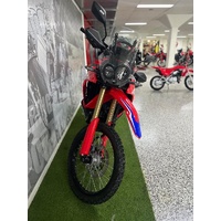 The 2024 Honda CRF300L Rally is praised as a versatile, lightweight, and budget-friendly adventure bike, excellent for beginners and experienced riders wanting accessible trail riding, thanks to its torquey 286cc engine with improved low-end grunt, nimble handling, and better highway manners (with an overdrive 6th gear) than the 250L, though its soft, basic suspension and non-adjustable levers are common critiques, often necessitating minor upgrades like aftermarket seats or suspension components for serious off-road use or heavier loads. We are 's Number 1 FAMILY OWNED dealership! We have a huge range of accessories in store and on-line, making us truly your ultimate one stop shop. We are a family owned business with an outstanding reputation. Find out why our customers prefer to deal with us for all of their bike needs. Interstate? No worries! We can deliver to Sydney, Melbourne, Newcastle, Tasmania, Adelaide, Perth and anywhere in between for a discounted rate. We also have great rates to the Sunshine Coast, Gold Coast. COMPREHENSIVE WARRANTIES available, just ask! Ask about our finance options that will make this bike extremely affordable. Same Day Bank Finance with competitive rates. All loan types for all types of workers; Full time, Part time, Casual, Self or short term employed. We'll do our best to get you the best package. We can even source loans for clients on defence force pensions or self-funded retirees. If you're on a government pension or government assistance, we may still be able to assist you with our strong relationships with based broker network that can come to you and at affordable payments. FREE Pre-Approvals and Quotes in store, over the phone or online. We work for you! You're in control; we structure your loan to your requests, not the bank telling you how it's going to be. We structure your loan term and repayments to suit your needs and circumstances. One of & Sunshine Coasts Largest Dealership Groups. Stocking NEW Yamaha, Honda, Ducati, KTM, Kawasaki, Husqvarna, Vespa, Moto Guzzi, Paggio, Aprilia, Sym, and Suzuki Motorbikes, as well as a huge selection of pre-owned bikes of many brands including Harley Davidson, Triumph, BMW, KTM the list goes on! Fully functioning and experienced workshop and an extensive range of accessories and parts with all the major brands, with the latest stock and technology. Easy to find locations in Windsor, and . Plenty of on-site parking and close to public transport. Personalised fully insured delivery to your front door within many South-East Queensland areas as well as discounted Australia wide Delivery, in most cases to your front door. Call and enter the bike code to the right of the screen or Email us with the form to your right.