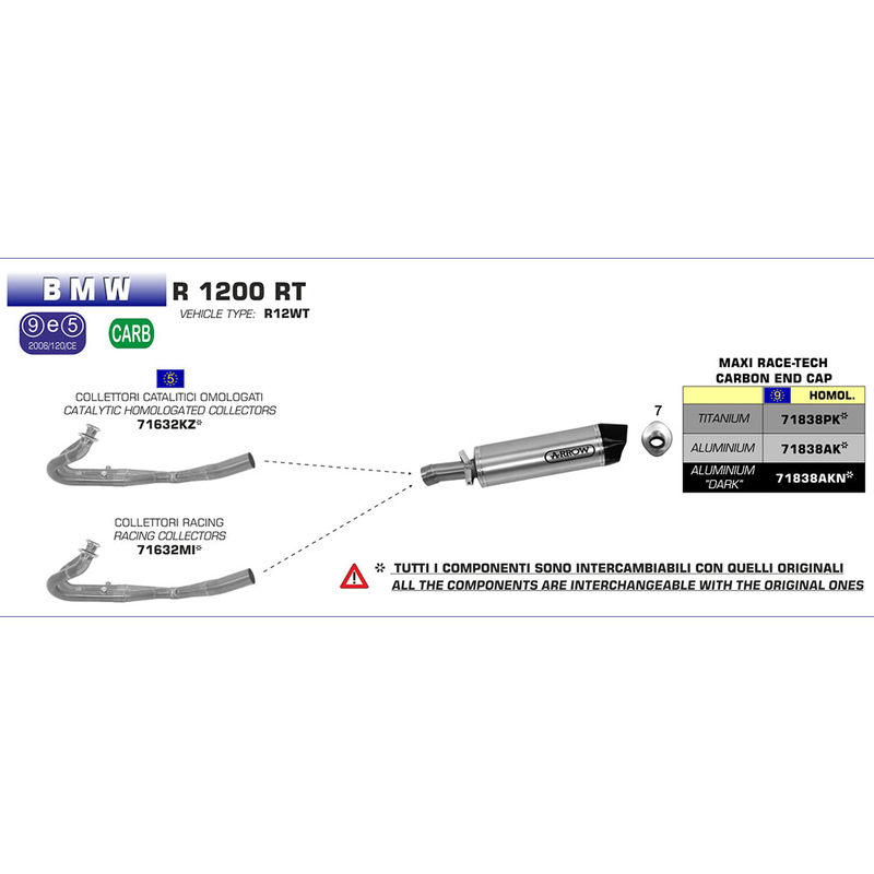 • Note RE R 1200 RT : For correct initial fitment, this Collector unit will connect to an ARROW Maxi Race-Tech #71838 Series silencer.