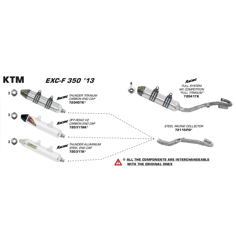 • All of the ARROW Racing Slip-On silencers designed for these models will connect with this performance Stainless Racing Collector.