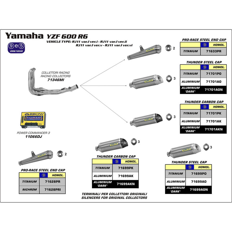 ARROW 71699AK Silencer - THUNDER ALUM SLV W CBN E/C - YA YZF R6 08>16