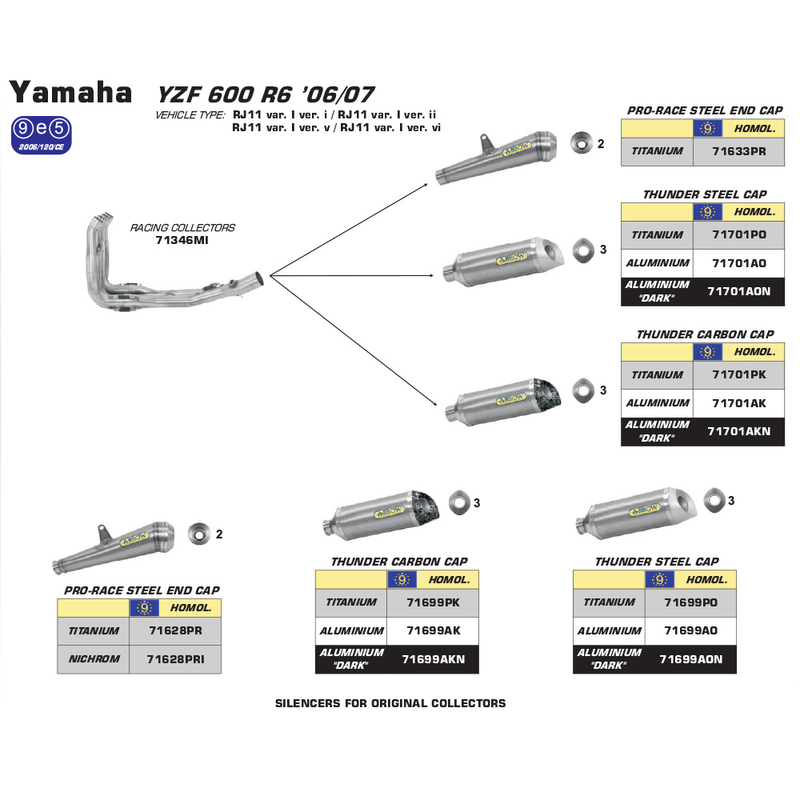 • This ARROW Homologated silencer complies with ADR 83:00 Noise Standard (legal in all Australian States).