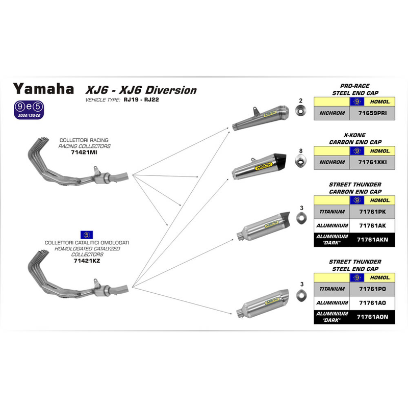 ARROW 71761PK Silencer - THUNDER Titanium with Carbon End Cap - YAMAHA XJ6
