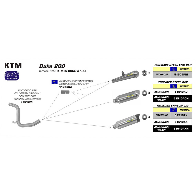 • Note - For correct initial fitment, an ARROW THUNDER #51503 Silencer designed for this model must be selected.