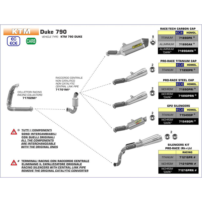 • This ARROW Homologated silencer is supplied with a dB killer to comply with ADR 83:00 Noise Standard (legal in all Australian States).