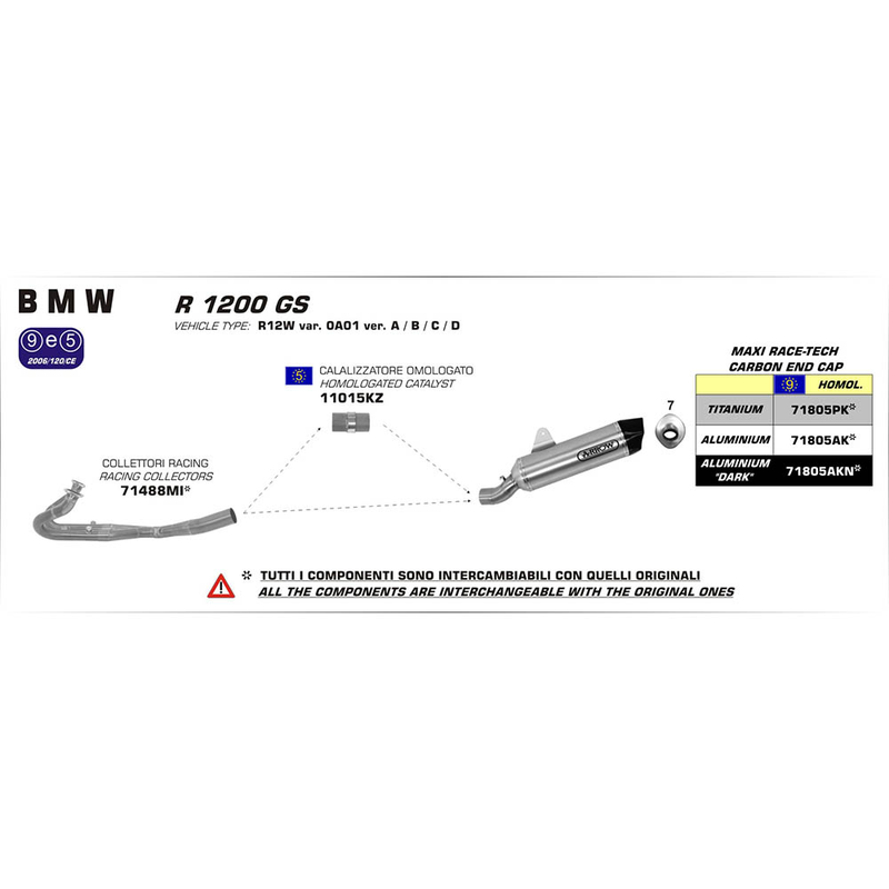 Note - For correct fitment to the R 1200 GS 2013 > 2018 models, this silencer is designed to connect to the ARROW Racing Collectors - Part# 71632MI