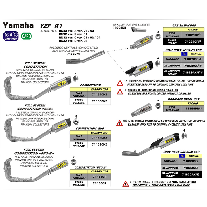 • This ARROW Homologated silencer complies with ADR 83:00 Noise Standard (legal in all Australian States).