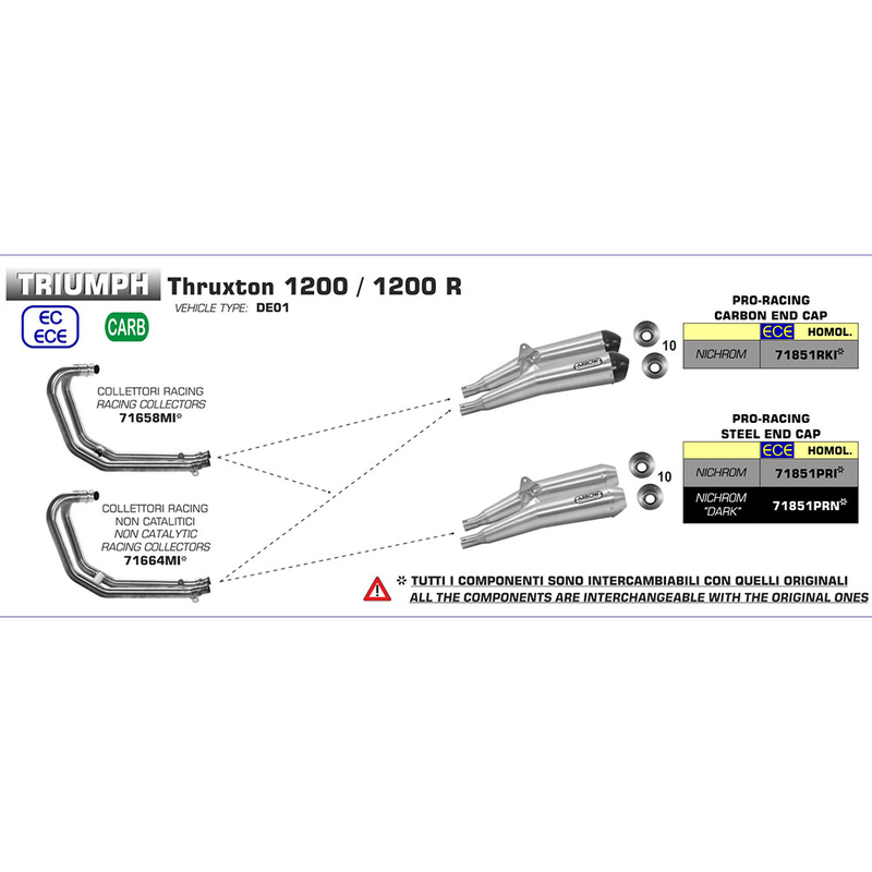 ARROW 71851RKI Silencer Set - PRO-RACING Nichrom Silver with Carbon End Cap - TRIUMPH 1200 Speed Twin / Thruxton / R / RS