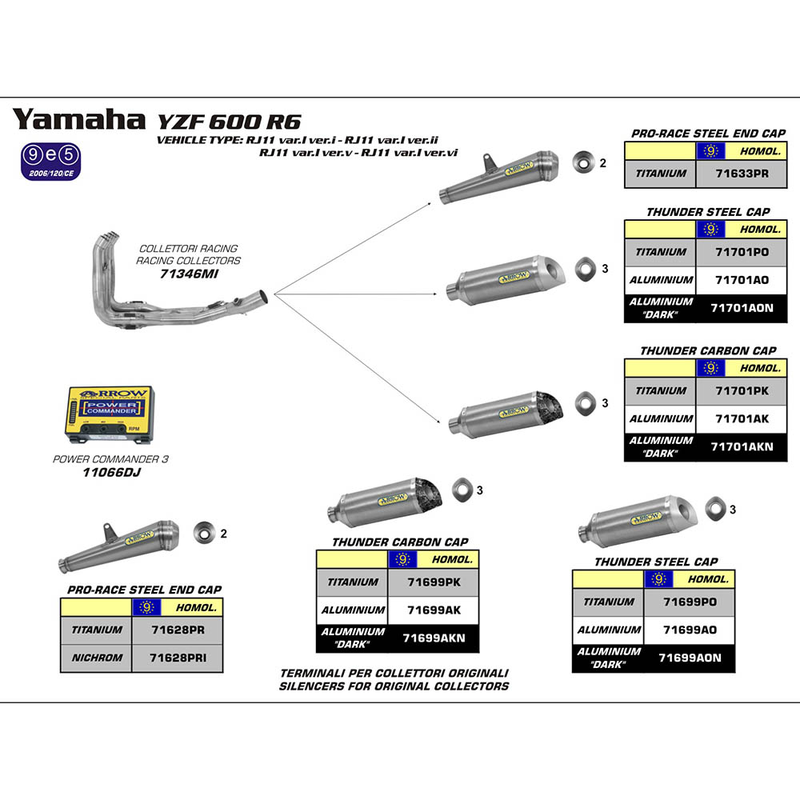 For correct initial fitment on R6 : 2006 - 2007, this silencer must be connected to the ARROW Racing Collectors - Part# 71346MI