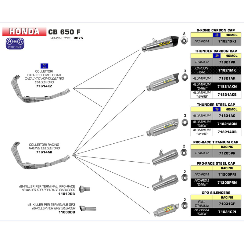 • Note - For correct initial fitment on both models, this silencer will require the ARROW Racing Collectors - Part# 71614MI