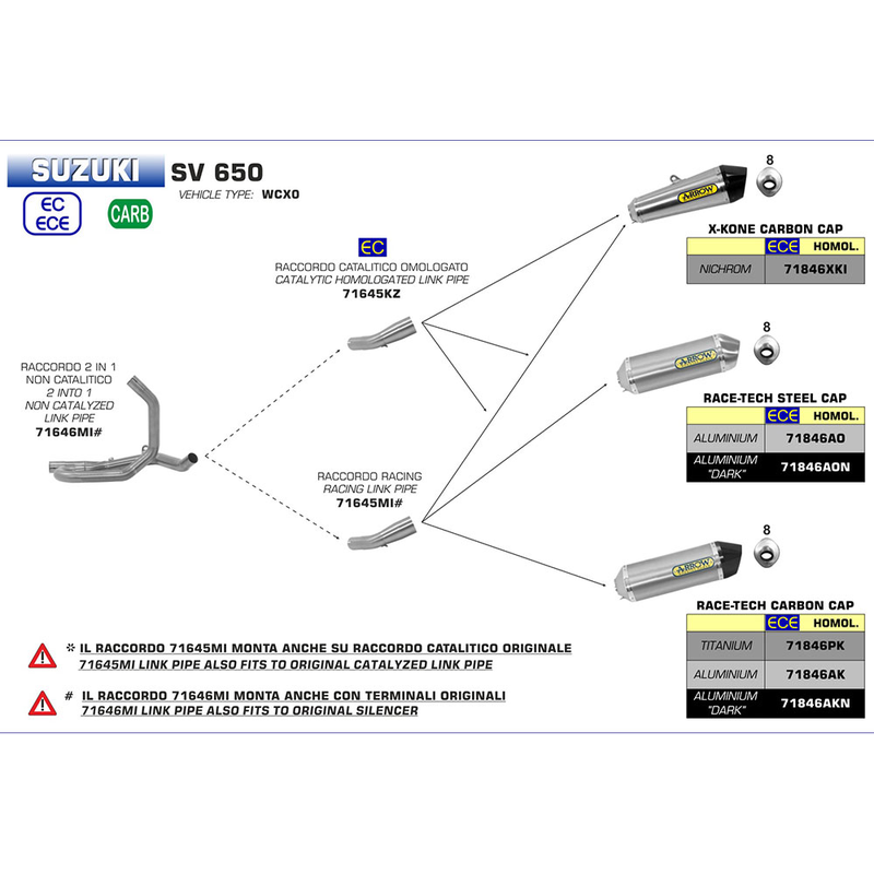 ARROW 71846XKI Silencer - X-KONE Nichrom Silver with Carbon End Cap - SUZUKI SV 650
