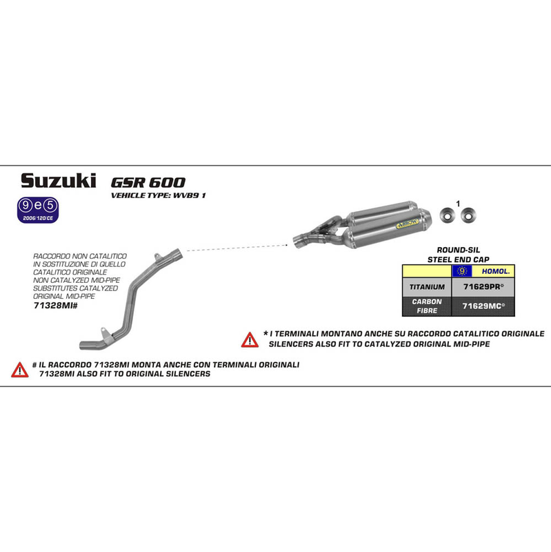 • Note - Fitment info, this ARROW Mid Link Pipe [elimates the O.E. Cat] connects to the O.E. Header / Collector unit to allow the ARROW Silencer Set - Part# 71629 series to be selected for fitment.