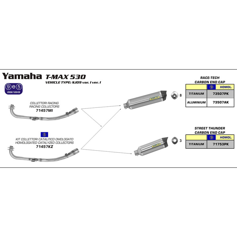 • This ARROW Racing 2 : 1 Collector [without Catalytic unit] is designed to be used with any of the ARROW Silencers designed for this model.