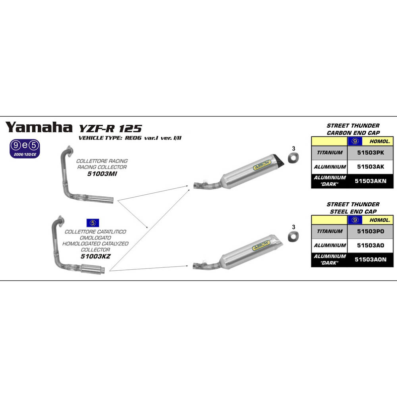 ARROW 51503PK Silencer - THUNDER Titanium Silver with Carbon Fibre End Cap - YAAMAHA YZF-R125