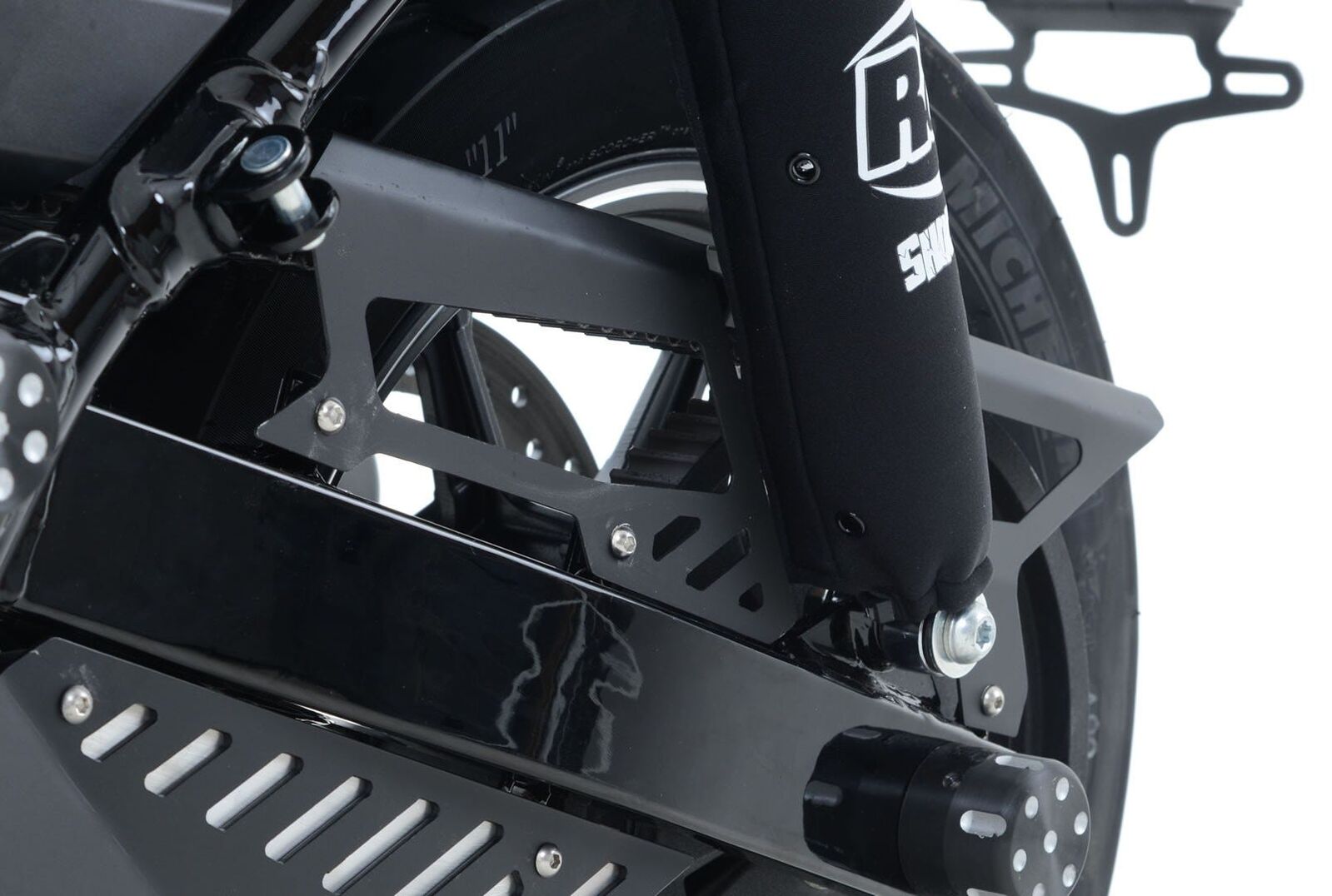This R&G Belt Guard for the Harley Davidson Street 500/750 series comes in two pieces an upper and lower, this - the upper piece, protects the upper portion of the belt offering complete coverage from near the swingarm pivot point to past the rear sprocket. Ensuring the belt is fully protected from road debris as well as preventing material licking up off the belt and onto the tyres. Made from aluminium, this Belt Guard is easy to install using existing mounts. Its finished in a two-tone Aluminium allowing for a high quality, durable Belt Guard that looks fantastic. Compatible with the Harley Davidson Street 500 '14- /750 '15- (Upper) series Cruisers. Please note: The lower Belt Guard isn't included with this but is available separately.