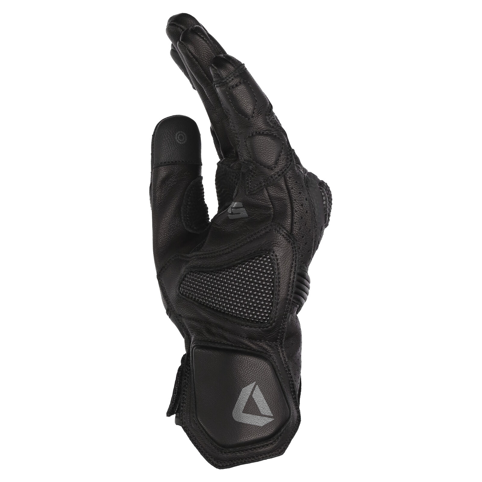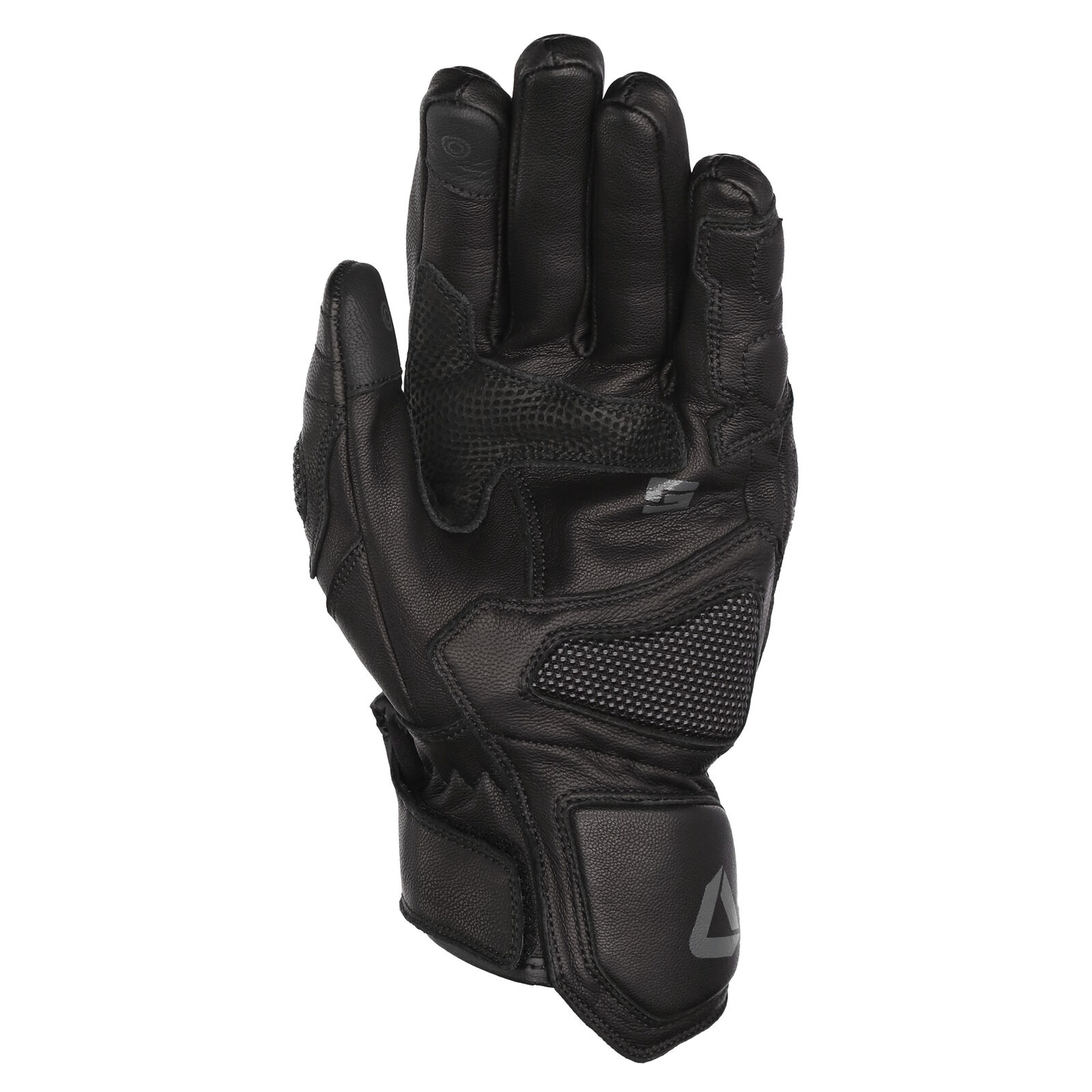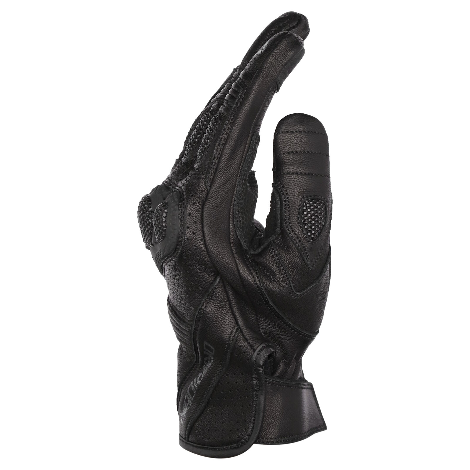 Full leather sports touring gloves offering ventilation and protection with perforated drum dyed goat leather upper and palm. The drum dye process softens the goat leather making them a comfortable fit right off the shelf with minimal break-in time. The palm is reinforced with digital leather for additional protection against abrasion in case of a crash.