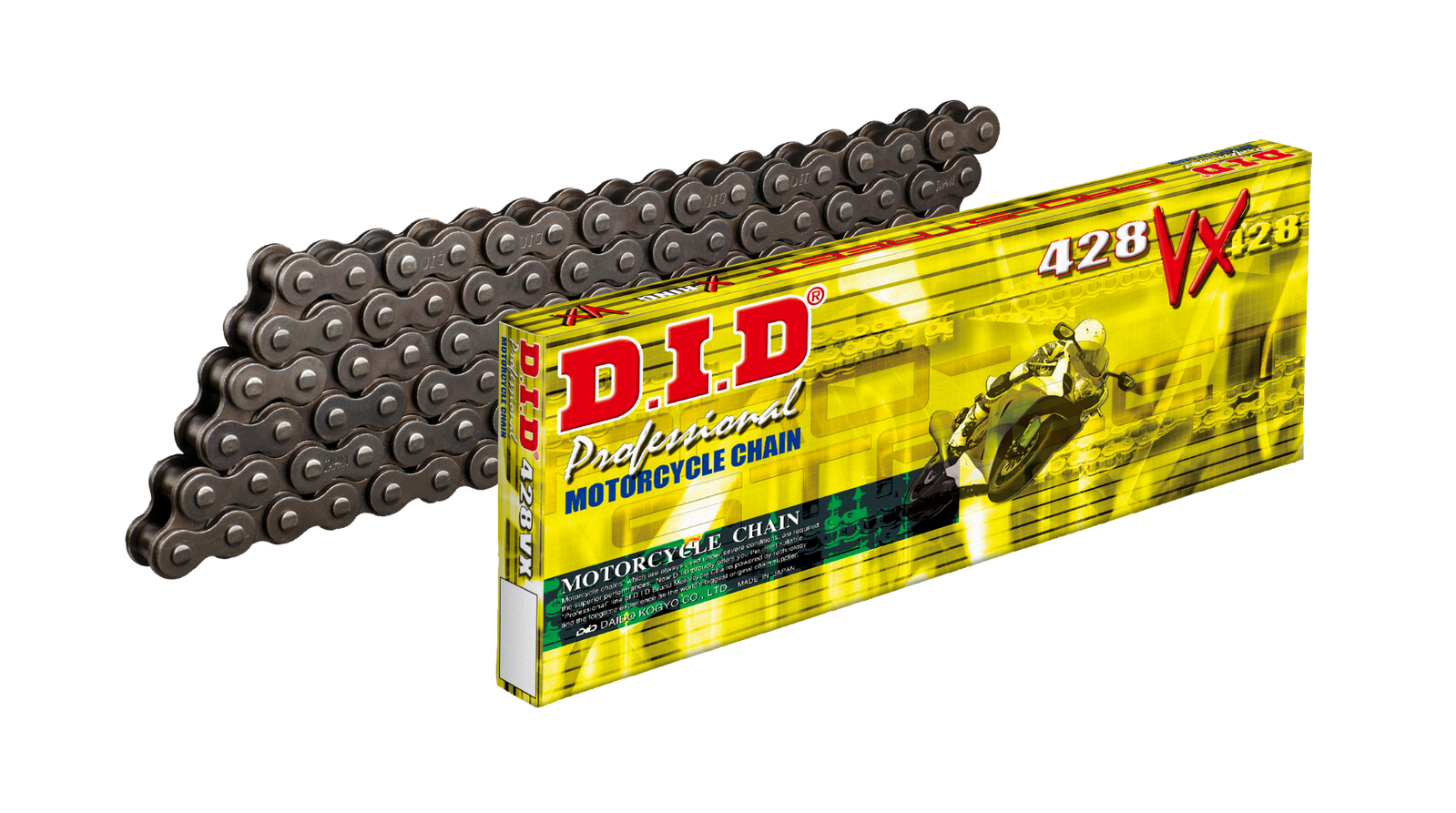 Superior Strength. D.I.D's #1 VX Series includes the 428VX, 520VX3, 525VX3, and 530VX3 chains for numerous street and off-road motorcycles from 350cc to 1100cc.