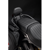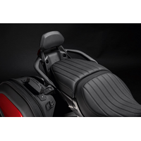 Made of genuine leather with fine finishings and a wider seat, it gives a sophisticated custom style without overlooking the passenger's comfort. Perfect in combination with the premium rider seat, it is the ideal accessory to complete an exclusive look with elegance and attention to detail.