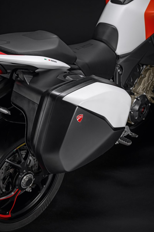 The high quality of the materials is combined with the lines in perfect Multistrada style, in an accessory that allows choosing the colour of the side panniers, to customise the look of the bike and enhance it with a touch of style that will not go unnoticed.