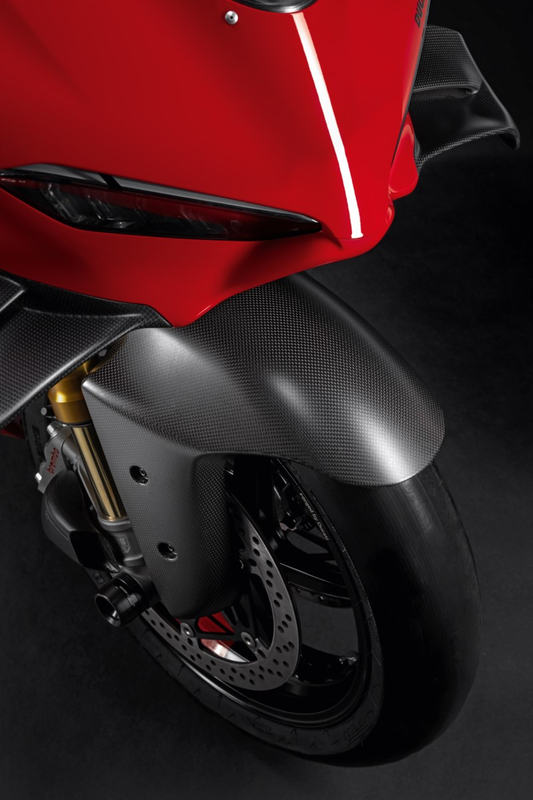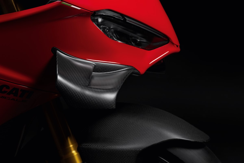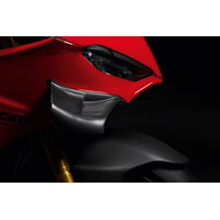 Design and functionality come together to create an accessory with a shape and geometry designed to aid vehicle aerodynamics in the front area around the wheel, thereby improving flow to the radiators and boosting performance. The use of premium materials such as carbon further enhances the sporty allure of this new Superbike, in a perfect combination of efficiency and aesthetics.