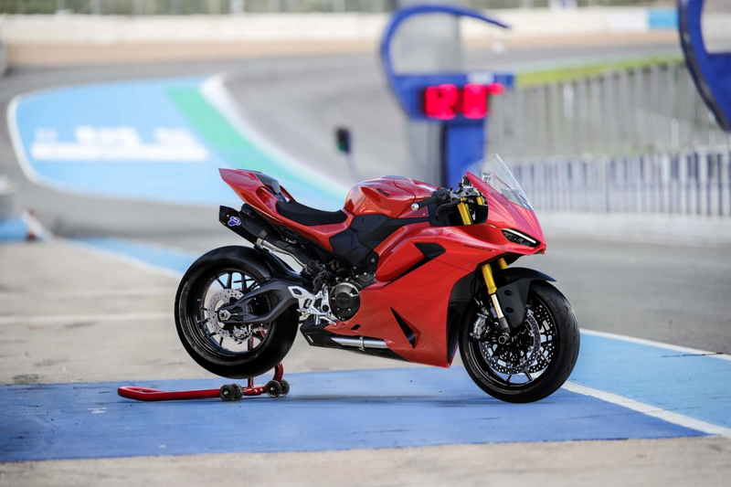 The package contains: Complete exhaust system, right fairing for racing exhausts, sports handlebars, adjustable aluminium rider footpegs, carbon heel guard, number plate holder removal cover, rear-view mirror hole cover, carbon clutch case protection, carbon generator case protection and adjustable Öhlins steering damper.