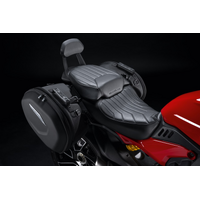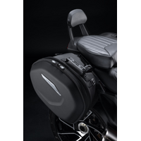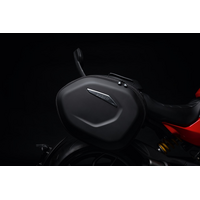 Style, large capacity, resilience: these are the strong points of the new semi-rigid side panniers. Their expandable capacity lets you carry everything you need for your trip. A new tail light is supplied and replaces the OEM version to restore the bike's type-approval and ensure visibility and safety. The design and styling make them a perfect match for the bike's muscular, elegant lines. The perfect accessory for fully enjoying every adventure riding your Diavel V4. Covers to protect the panniers from the rain are included in the set.