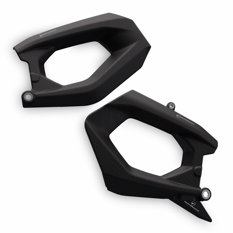 Unique design accessory made entirely of carbon to protect the double-sided swinging arm. Thanks to the strength of the carbon fibre, it stands out on account of its functionality and style, ensuring effective protection and giving the bike an aggressive, typically racing look.