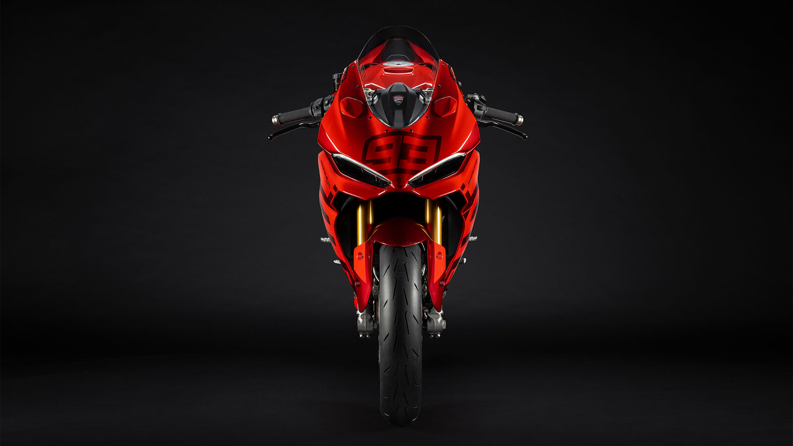 This special edition of the Panigale V2 was developed based on its role as a training bike for Marc Márquez. The dedicated equipment included in this version forms the ideal setup for hitting the track: racing-position handlebars, forged wheels, and more racing-inspired details to make the Panigale V2 even more effective on the curbs. The one-of-a-kind livery is inspired by the 2024 Barcelona post-season test, the first time on track “Todo Rojo”.