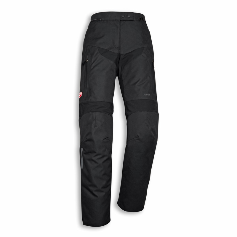 The Tour C5 trousers, specific for touring use, are produced by Spidi exclusively for Ducati. Strong, ergonomic and adjustable, they are made from heavy-duty Cordura® polyester and feature a waterproof, breathable and windbreaker H2Out® layer to adapt to all the different climatic conditions. The removable inner thermal lining, the stretch fabric, the large ventilated mesh areas and the zip-adjusted air vents guarantee excellent comfort and an ergonomic fit that adapts to all riding maneuvers. Also available in a men's fit version, they feature protectors certified to the latest standards and regulations, so that riders always lean safely into every bend. The connector zipper allows them to be paired with the matching jacket and all the garments in the collection, to simply get on board and enjoy the unforgettable thrill of a brand new adventure.