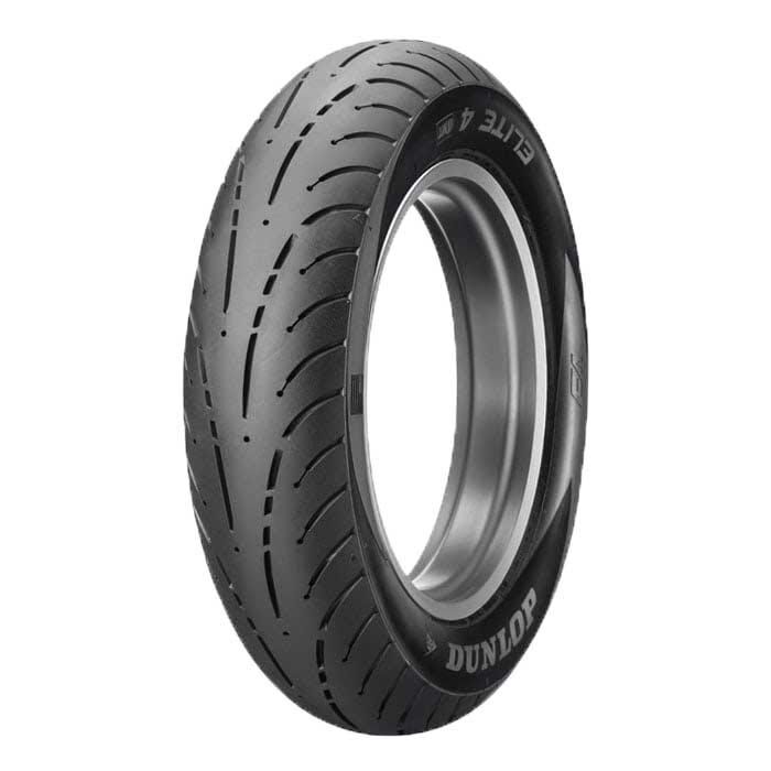 Mileage, mileage and more mileage: Dunlop’s all-new Elite 4 with MT Multi-Tread rear tyres provide significantly more mileage than single-compound tyres. All Elite 4 rear tyres utilize Dunlop’s MT Multi-Tread technology with a long-wearing compound in the center of the tyre and a lateral-grip compound on each shoulder, providing increased mileage without sacrificing handling. New tread pattern helps provide class-leading wet-pavement performance, even wear over the life of the tyre, and less road noise. Available in radial and bias-ply construction, the Elite 4 fits hundreds of touring, cruiser and standard bikes, including current and non-current machines.