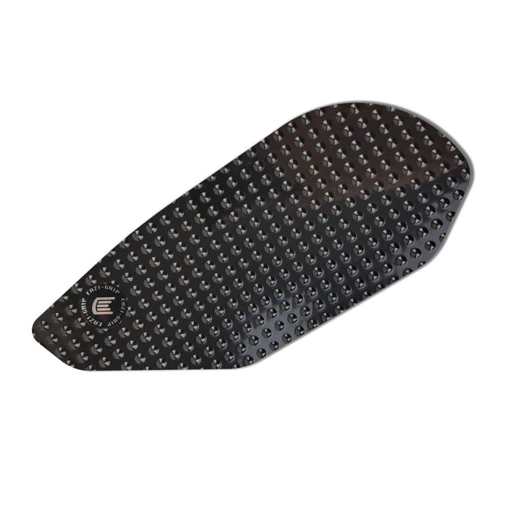 Eazi-Grip EVO - the non-abrasive high traction tank grips MV Agusta Brutale 800RR EVO Tank Grips includes Tank Grips, left and right side, black IPA cleaner Fitting Instructions Manufactured in the UK from high quality polyurethane, these traction pads are designed to be applied to the fuel tank recesses next to the riders knees and come pre-cut to size. High quality polyurethane with soft but durable domed surface Improves rider control in corners and under braking with minimal effort Non-abrasive - kind to riders clothing and leathers Cut to size - quick and easy to apply - instructions and IPA surface cleaner provided Application Peel back part of the release liner then press the tank grip firmly onto the tank and slowly peel back the liner whilst applying the grip. Push down the surface and take care not to trap air bubbles as you go. Allow 48 hours for the adhesive to fully bond before using the grips. Use an IPA cleaner to prepare surface area NO methylated spirits/petrol/lighter fluid etc. as these leave behind a thin, greasy residue. For best results ensure prepared surface is above 10oC. Also available - Eazi-Grip PRO Tank Grips Race developed in BSB and Isle of Man TT for the more aggressive race or track-day rider, Eazi-Grip PRO Tank Grips features a unique, circular embossed pattern, with a flatter, lower profile that combines excellent grip and durability with exceptional rider feel. Eazi-Grip PRO Tank Grips have been specifically designed to allow greater movement on the bike whilst giving high levels of grip when needed through corners and under heavy braking. Designed, developed and manufactured in the U.K. Hint: Black grips look better than clear on a black tank, where clear grips can appear a little blue. Black grips can also look better than clear on a pure white tank, where clear grips can appear a little yellow. Clear grips are optimised for colours other than black and pure white. Suitable for MV Agusta Brutale 800RR 2018 - current models only Part No. EVO606BL