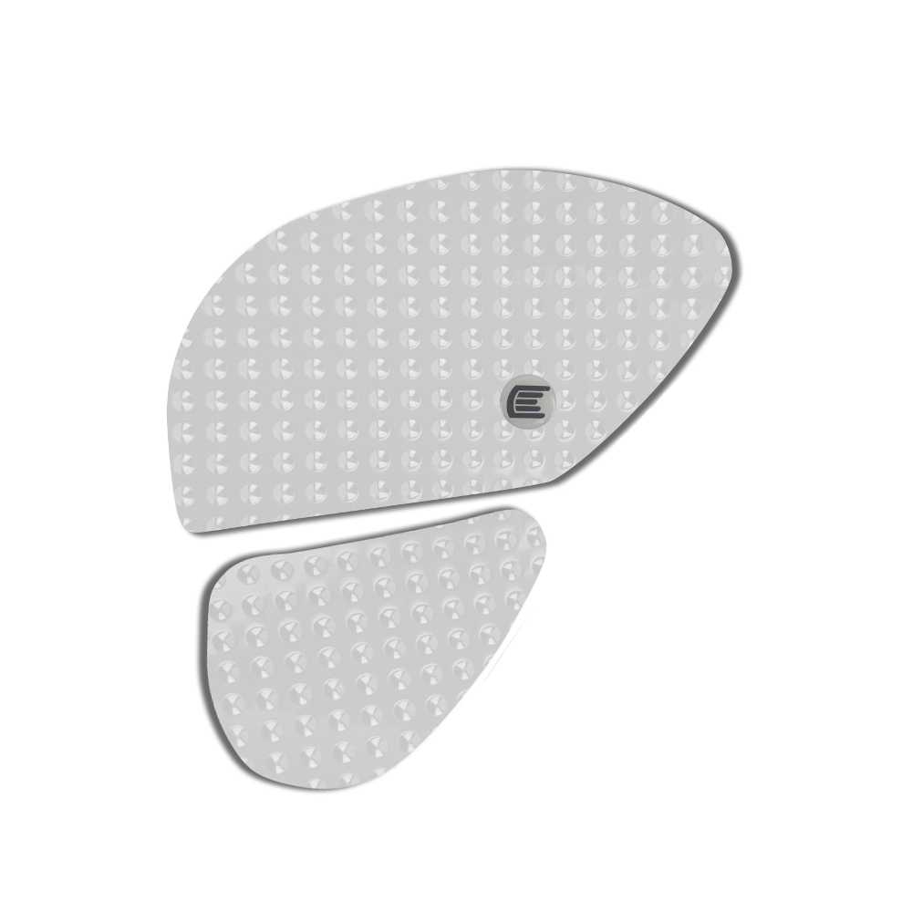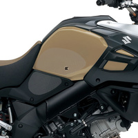 Eazi-Grip EVO - the non-abrasive high traction tank grips Suzuki V-Strom 1000 DL1000 EVO Tank Grips includes Tank Grips, left and right side, clear IPA cleaner Fitting Instructions Manufactured in the UK from high quality polyurethane, these traction pads are designed to be applied to the fuel tank recesses next to the riders knees and come pre-cut to size. High quality polyurethane with soft but durable domed surface Improves rider control in corners and under braking with minimal effort Non-abrasive - kind to riders clothing and leathers Cut to size - quick and easy to apply - instructions and IPA surface cleaner provided Application Peel back part of the release liner then press the tank grip firmly onto the tank and slowly peel back the liner whilst applying the grip. Push down the surface and take care not to trap air bubbles as you go. Allow 48 hours for the adhesive to fully bond before using the grips. Use an IPA cleaner to prepare surface area NO methylated spirits/petrol/lighter fluid etc. as these leave behind a thin, greasy residue. For best results ensure prepared surface is above 10oC. Also available - Eazi-Grip PRO Tank Grips Race developed in BSB and Isle of Man TT for the more aggressive race or track-day rider, Eazi-Grip PRO Tank Grips features a unique, circular embossed pattern, with a flatter, lower profile that combines excellent grip and durability with exceptional rider feel. Eazi-Grip PRO Tank Grips have been specifically designed to allow greater movement on the bike whilst giving high levels of grip when needed through corners and under heavy braking. Designed, developed and manufactured in the U.K. Hint: Black grips look better than clear on a black tank, where clear grips can appear a little blue. Black grips can also look better than clear on a pure white tank, where clear grips can appear a little yellow. Clear grips are optimised for colours other than black and pure white. NB. Clear grips are supplied with a pink-coloured adhesive liner which makes the grips appear pink until the liner is removed. Suitable for Suzuki V-Strom 1000 DL1000 2014 - 2019 models only Part No. EVO722CL