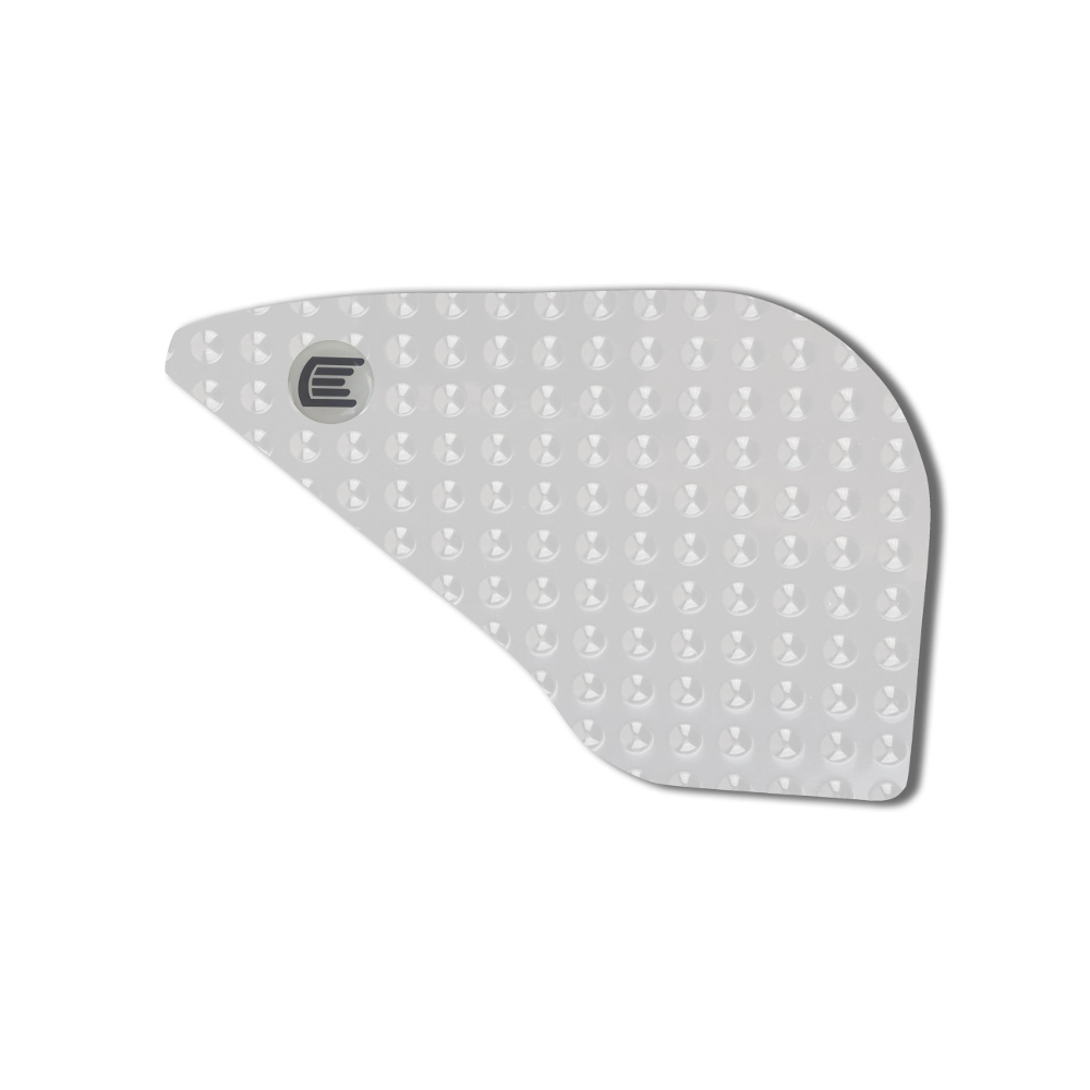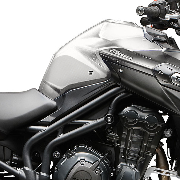 Eazi-Grip EVO - the non-abrasive high traction tank grips Triumph Tiger Explorer 1200 XC XR EVO Tank Grips includes Tank Grips, left and right side, clear IPA cleaner Fitting Instructions Manufactured in the UK from high quality polyurethane, these traction pads are designed to be applied to the fuel tank recesses next to the riders knees and come pre-cut to size. High quality polyurethane with soft but durable domed surface Improves rider control in corners and under braking with minimal effort Non-abrasive - kind to riders clothing and leathers Cut to size - quick and easy to apply - instructions and IPA surface cleaner provided Application Peel back part of the release liner then press the tank grip firmly onto the tank and slowly peel back the liner whilst applying the grip. Push down the surface and take care not to trap air bubbles as you go. Allow 48 hours for the adhesive to fully bond before using the grips. Use an IPA cleaner to prepare surface area NO methylated spirits/petrol/lighter fluid etc. as these leave behind a thin, greasy residue. For best results ensure prepared surface is above 10oC. Also available - Eazi-Grip PRO Tank Grips Race developed in BSB and Isle of Man TT for the more aggressive race or track-day rider, Eazi-Grip PRO Tank Grips features a unique, circular embossed pattern, with a flatter, lower profile that combines excellent grip and durability with exceptional rider feel. Eazi-Grip PRO Tank Grips have been specifically designed to allow greater movement on the bike whilst giving high levels of grip when needed through corners and under heavy braking. Designed, developed and manufactured in the U.K. Hint: Black grips look better than clear on a black tank, where clear grips can appear a little blue. Black grips can also look better than clear on a pure white tank, where clear grips can appear a little yellow. Clear grips are optimised for colours other than black and pure white. NB. Clear grips are supplied with a pink-coloured adhesive liner which makes the grips appear pink until the liner is removed. Suitable for Triumph Tiger Explorer 1200 XC XR 2012 - current models only Part No. EVO809CL