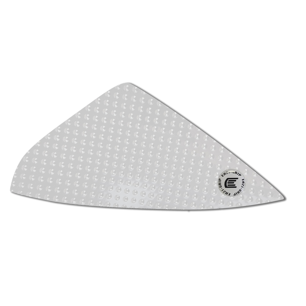 Eazi-Grip EVO - the non-abrasive high traction tank grips Yamaha MT-03 EVO Tank Grips includes Tank Grips, left and right side, clear IPA cleaner Fitting Instructions Manufactured in the UK from high quality polyurethane, these traction pads are designed to be applied to the fuel tank recesses next to the riders knees and come pre-cut to size. High quality polyurethane with soft but durable domed surface Improves rider control in corners and under braking with minimal effort Non-abrasive - kind to riders clothing and leathers Cut to size - quick and easy to apply - instructions and IPA surface cleaner provided Application Peel back part of the release liner then press the tank grip firmly onto the tank and slowly peel back the liner whilst applying the grip. Push down the surface and take care not to trap air bubbles as you go. Allow 48 hours for the adhesive to fully bond before using the grips. Use an IPA cleaner to prepare surface area NO methylated spirits/petrol/lighter fluid etc. as these leave behind a thin, greasy residue. For best results ensure prepared surface is above 10oC. Also available - Eazi-Grip PRO Tank Grips Race developed in BSB and Isle of Man TT for the more aggressive race or track-day rider, Eazi-Grip PRO Tank Grips features a unique, circular embossed pattern, with a flatter, lower profile that combines excellent grip and durability with exceptional rider feel. Eazi-Grip PRO Tank Grips have been specifically designed to allow greater movement on the bike whilst giving high levels of grip when needed through corners and under heavy braking. Designed, developed and manufactured in the U.K. Hint: Black grips look better than clear on a black tank, where clear grips can appear a little blue. Black grips can also look better than clear on a pure white tank, where clear grips can appear a little yellow. Clear grips are optimised for colours other than black and pure white. NB. Clear grips are supplied with a pink-coloured adhesive liner which makes the grips appear pink until the liner is removed. Suitable for Yamaha MT-03 2016 - 2019 models only  Part No. EVO930CL