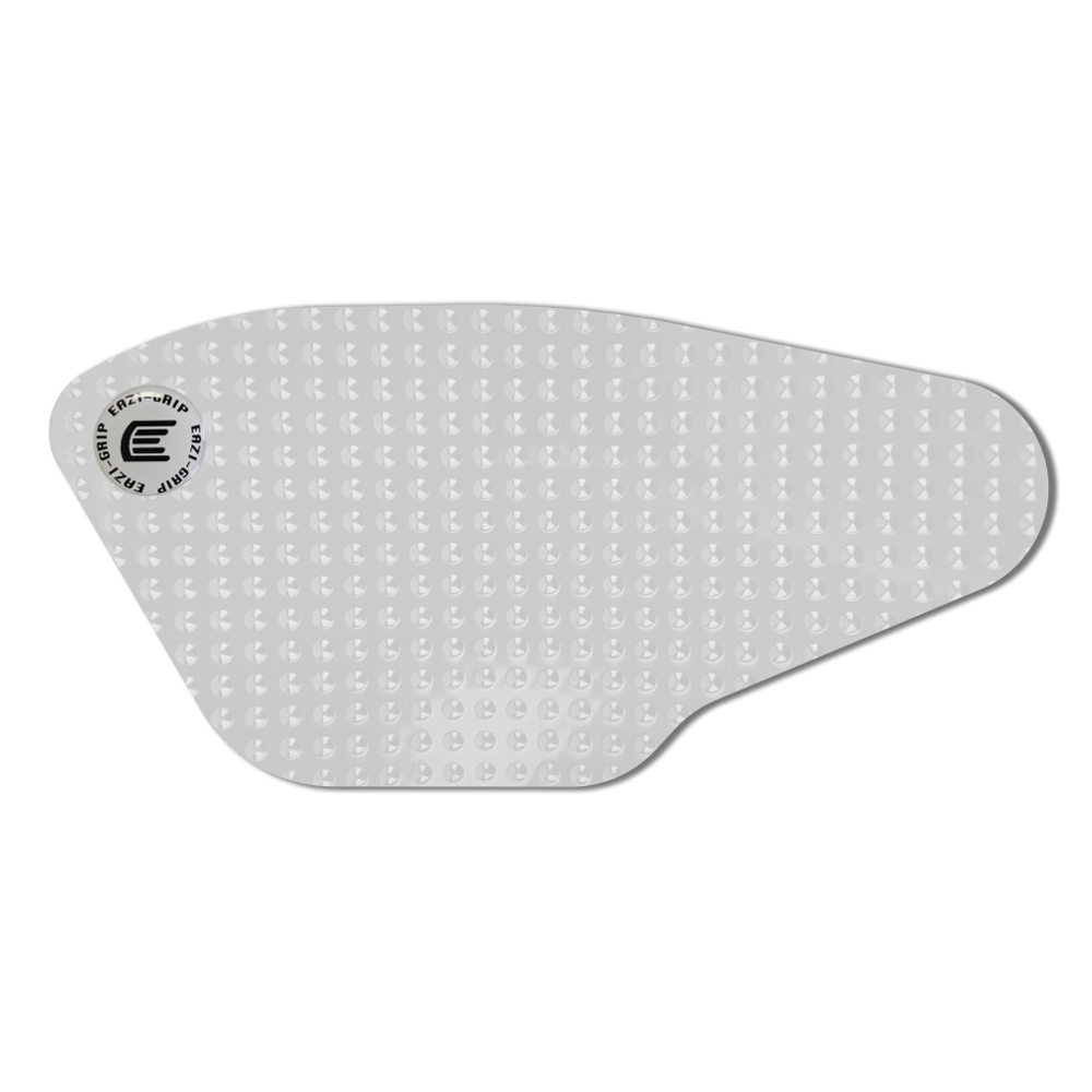 Eazi-Grip EVO - the non-abrasive high traction tank grips Yamaha Niken EVO Tank Grips includes Tank Grips, left and right side, clear IPA cleaner Fitting Instructions Manufactured in the UK from high quality polyurethane, these traction pads are designed to be applied to the fuel tank recesses next to the riders knees and come pre-cut to size. High quality polyurethane with soft but durable domed surface Improves rider control in corners and under braking with minimal effort Non-abrasive - kind to riders clothing and leathers Cut to size - quick and easy to apply - instructions and IPA surface cleaner provided Application Peel back part of the release liner then press the tank grip firmly onto the tank and slowly peel back the liner whilst applying the grip. Push down the surface and take care not to trap air bubbles as you go. Allow 48 hours for the adhesive to fully bond before using the grips. Use an IPA cleaner to prepare surface area NO methylated spirits/petrol/lighter fluid etc. as these leave behind a thin, greasy residue. For best results ensure prepared surface is above 10oC. Also available - Eazi-Grip PRO Tank Grips Race developed in BSB and Isle of Man TT for the more aggressive race or track-day rider, Eazi-Grip PRO Tank Grips features a unique, circular embossed pattern, with a flatter, lower profile that combines excellent grip and durability with exceptional rider feel. Eazi-Grip PRO Tank Grips have been specifically designed to allow greater movement on the bike whilst giving high levels of grip when needed through corners and under heavy braking. Designed, developed and manufactured in the U.K. Hint: Black grips look better than clear on a black tank, where clear grips can appear a little blue. Black grips can also look better than clear on a pure white tank, where clear grips can appear a little yellow. Clear grips are optimised for colours other than black and pure white. Suitable for Yamaha Niken 2018 - current models only Part No. EVO932CL