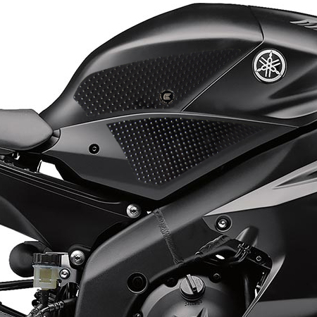 Eazi-Grip EVO - the non-abrasive high traction tank grips Yamaha YZF-R6 EVO Tank Grips includes Tank Grips, left and right side, black IPA cleaner Fitting Instructions Manufactured in the UK from high quality polyurethane, these traction pads are designed to be applied to the fuel tank recesses next to the riders knees and come pre-cut to size. High quality polyurethane with soft but durable domed surface Improves rider control in corners and under braking with minimal effort Non-abrasive - kind to riders clothing and leathers Cut to size - quick and easy to apply - instructions and IPA surface cleaner provided Application Peel back part of the release liner then press the tank grip firmly onto the tank and slowly peel back the liner whilst applying the grip. Push down the surface and take care not to trap air bubbles as you go. Allow 48 hours for the adhesive to fully bond before using the grips. Use an IPA cleaner to prepare surface area NO methylated spirits/petrol/lighter fluid etc. as these leave behind a thin, greasy residue. For best results ensure prepared surface is above 10oC. Also available - Eazi-Grip PRO Tank Grips Race developed in BSB and Isle of Man TT for the more aggressive race or track-day rider, Eazi-Grip PRO Tank Grips features a unique, circular embossed pattern, with a flatter, lower profile that combines excellent grip and durability with exceptional rider feel. Eazi-Grip PRO Tank Grips have been specifically designed to allow greater movement on the bike whilst giving high levels of grip when needed through corners and under heavy braking. Designed, developed and manufactured in the U.K. Hint: Black grips look better than clear on a black tank, where clear grips can appear a little blue. Black grips can also look better than clear on a pure white tank, where clear grips can appear a little yellow. Clear grips are optimised for colours other than black and pure white. Suitable for Yamaha YZF-R6 2017 - current models only Part No. EVO928BL