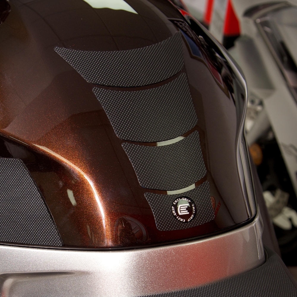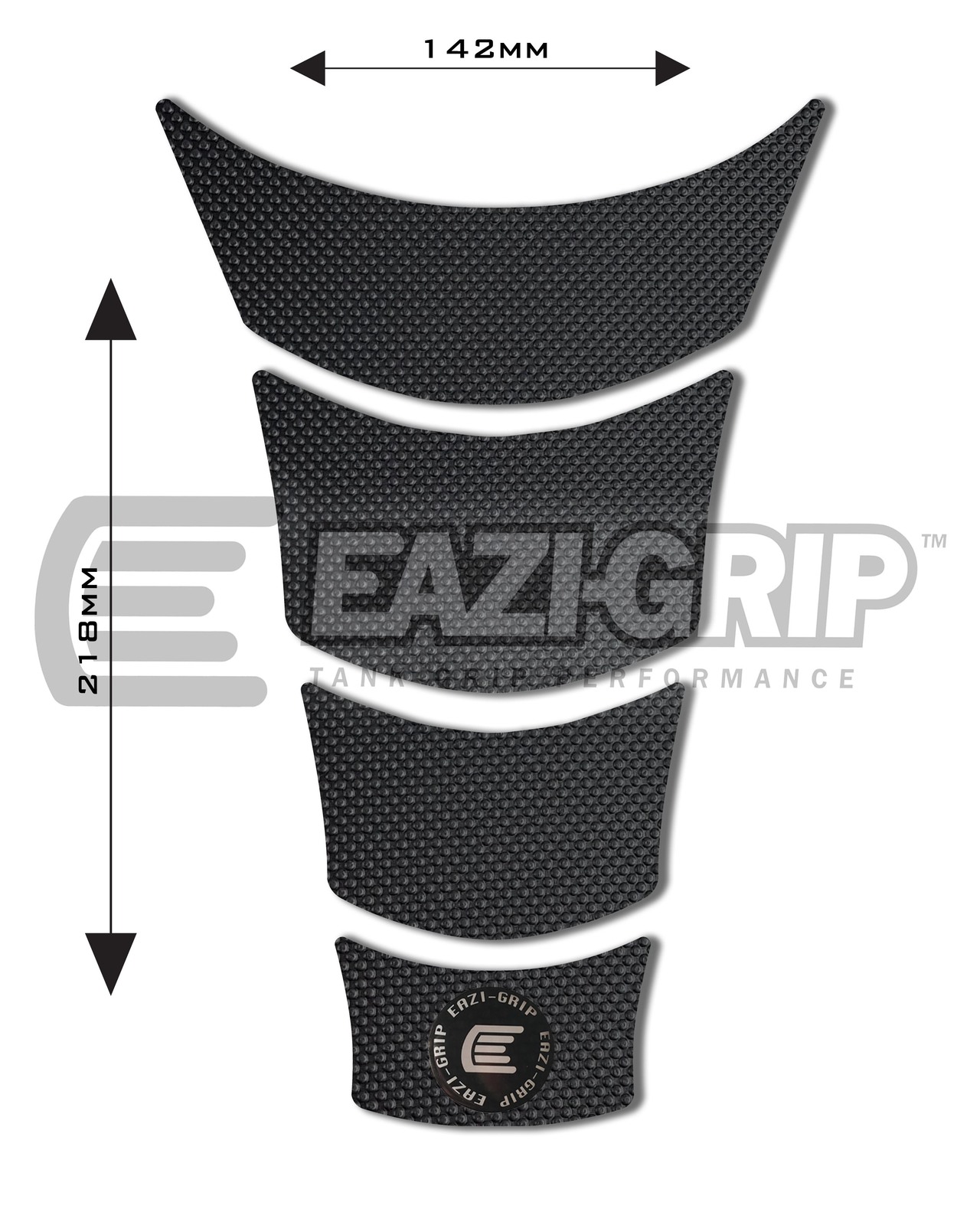 Eazi-Grip PRO - the non-abrasive high performance tank pads PRO Centre Tank Pad 142mm x 218mm, black Manufactured in the UK from high quality polyurethane, this Centre Tank Pad is designed to be applied along the centre of the fuel tank and to complement Eazi-Grip PRO Tank Grips for a uniform look. Please check pad dimensions to ensure the size is suitable for your bike. Eazi-Grip PRO Centre Tank Pads feature a unique, circular embossed pattern, with a flatter, lower profile that combines excellent grip and durability with exceptional rider feel. PRO Centre Tank Pads have been specifically designed to help protect your tank from wear and scratches caused by zips and buckles whilst offering additional grip when needed through corners and under heavy braking. High quality polyurethane with low profile, circular embossed surface Helps protect your tank from wear and scratching caused by zips and buckles Provides outstanding feel and movement but with superior grip when needed Non-abrasive - kind to riders leathers Application instructions and IPA surface cleaner provided Application Use the IPA cleaner to prepare surface area - NO methylated spirits/petrol/lighter fluid etc. as these leave behind a thin, greasy residue. For best results ensure prepared surface is above 10oC. Peel back part of the release liner then press the tank pad firmly onto the tank and slowly peel back the liner whilst applying the pad. Push down the surface and take care not to trap air bubbles as you go. Allow 48 hours for the adhesive to fully bond before using the pad. Also available from our store - Eazi-Grip EVO CentreTank Pads Eazi-Grip EVO Centre Tank Pads have a soft but durable domed surface that is very easy to grip, giving the rider increased control with minimal effort, thereby reducing fatigue and and reducing wear to the riders leathers or clothing. Eazi-Grip EVO Centre Tank Pads are designed to match our EVO Tank Grips for a uniform look. Suitable for a wide range of motorcycles Part No. PROCENTREPADABL