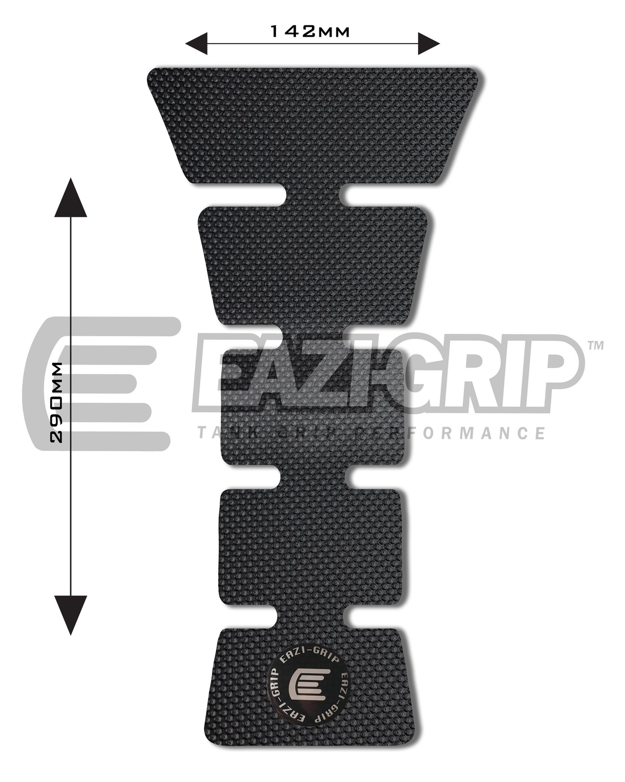 Eazi-Grip PRO - the non-abrasive high performance tank pads PRO Centre Tank Pad 142mm x 290mm, black Manufactured in the UK from high quality polyurethane, this Centre Tank Pad is designed to be applied along the centre of the fuel tank and to complement Eazi-Grip PRO Tank Grips for a uniform look. Please check pad dimensions to ensure the size is suitable for your bike. Eazi-Grip PRO Centre Tank Pads feature a unique, circular embossed pattern, with a flatter, lower profile that combines excellent grip and durability with exceptional rider feel. PRO Centre Tank Pads have been specifically designed to help protect your tank from wear and scratches caused by zips and buckles whilst offering additional grip when needed through corners and under heavy braking. High quality polyurethane with low profile, circular embossed surface Helps protect your tank from wear and scratching caused by zips and buckles Provides outstanding feel and movement but with superior grip when needed Non-abrasive - kind to riders leathers Application instructions and IPA surface cleaner provided Application Use the IPA cleaner to prepare surface area - NO methylated spirits/petrol/lighter fluid etc. as these leave behind a thin, greasy residue. For best results ensure prepared surface is above 10oC. Peel back part of the release liner then press the tank pad firmly onto the tank and slowly peel back the liner whilst applying the pad. Push down the surface and take care not to trap air bubbles as you go. Allow 48 hours for the adhesive to fully bond before using the pad. Also available from our store - Eazi-Grip EVO CentreTank Pads Eazi-Grip EVO Centre Tank Pads have a soft but durable domed surface that is very easy to grip, giving the rider increased control with minimal effort, thereby reducing fatigue and and reducing wear to the riders leathers or clothing. Eazi-Grip EVO Centre Tank Pads are designed to match our EVO Tank Grips for a uniform look. Suitable for a wide range of motorcycles Part No. PROCENTREPADEBL