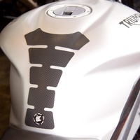 Eazi-Grip PRO - the non-abrasive high performance tank pads PRO Centre Tank Pad 147mm x 221mm, black Manufactured in the UK from high quality polyurethane, this Centre Tank Pad is designed to be applied along the centre of the fuel tank and to complement Eazi-Grip PRO Tank Grips for a uniform look. Please check pad dimensions to ensure the size is suitable for your bike. Eazi-Grip PRO Centre Tank Pads feature a unique, circular embossed pattern, with a flatter, lower profile that combines excellent grip and durability with exceptional rider feel. PRO Centre Tank Pads have been specifically designed to help protect your tank from wear and scratches caused by zips and buckles whilst offering additional grip when needed through corners and under heavy braking. High quality polyurethane with low profile, circular embossed surface Helps protect your tank from wear and scratching caused by zips and buckles Provides outstanding feel and movement but with superior grip when needed Non-abrasive - kind to riders leathers Application instructions and IPA surface cleaner provided Application Use the IPA cleaner to prepare surface area - NO methylated spirits/petrol/lighter fluid etc. as these leave behind a thin, greasy residue. For best results ensure prepared surface is above 10oC. Peel back part of the release liner then press the tank pad firmly onto the tank and slowly peel back the liner whilst applying the pad. Push down the surface and take care not to trap air bubbles as you go. Allow 48 hours for the adhesive to fully bond before using the pad. Also available from our store - Eazi-Grip EVO CentreTank Pads Eazi-Grip EVO Centre Tank Pads have a soft but durable domed surface that is very easy to grip, giving the rider increased control with minimal effort, thereby reducing fatigue and and reducing wear to the riders leathers or clothing. Eazi-Grip EVO Centre Tank Pads are designed to match our EVO Tank Grips for a uniform look. Suitable for a wide range of motorcycles Part No. PROCENTREPADFBL