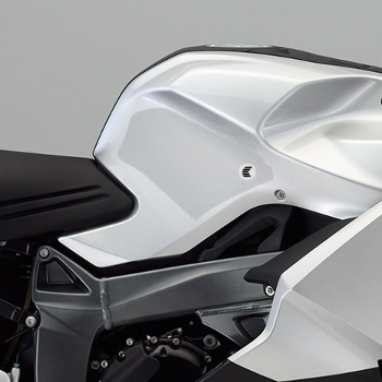 Eazi-Grip PRO - the non-abrasive high performance tank grips BMW K1200S and K1300S PRO Tank Grips includes Tank Grips, left and right side, clear IPA cleaner Fitting Instructions Manufactured in the UK from high quality polyurethane, these traction pads are designed to be applied to the fuel tank recesses next to the riders knees and come pre-cut to size. High quality polyurethane with low profile, circular embossed surface Provides outstanding feel and movement but with superior grip when needed Suitable for race, track days and more enthusiastic road riders Non-abrasive - kind to riders leathers Cut to size - quick and easy to apply - instructions and IPA surface cleaner provided Road and track use only - not suitable for off-road use Application Peel back part of the release liner then press the tank grip firmly onto the tank and slowly peel back the liner whilst applying the grip. Push down the surface and take care not to trap air bubbles as you go. Allow 48 hours for the adhesive to fully bond before using the grips. Use an IPA cleaner to prepare surface area NO methylated spirits/petrol/lighter fluid etc. as these leave behind a thin, greasy residue. For best results ensure prepared surface is above 10oC. Also available from our store - Eazi-Grip EVO Tank Grips Eazi-Grip EVO tank grips have a soft but durable domed surface that is very easy to grip, giving the rider increased control with minimal effort, thereby reducing fatigue and and reducing wear to the riders leathers or clothing. Eazi-Grip EVO Tank Grips tend to suit the less aggressive rider (primarily road and occassional track use) and are a great alternative to more abrasive, higher priced tank grips available on the market. Designed, developed and manufactured in the U.K. Hint: Black grips look better than clear on a black tank, where clear grips can appear a little blue. Black grips can also look better than clear on a pure white tank, where clear grips can appear a little yellow. Clear grips are optimised for colours other than black and pure white. NB. Clear grips are supplied with a pink-coloured adhesive liner which makes the grips appear pink until the liner is removed. Suitable for K1200S 2005 - 2008 and K1300S 2009 - 2016 models only Part No. PRO100CL