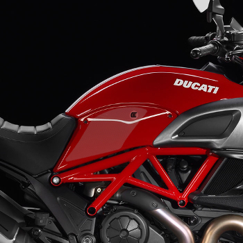 Eazi-Grip PRO - the non-abrasive high performance tank grips Ducati Diavel PRO Tank Grips includes Tank Grips, left and right side, clear IPA cleaner Fitting Instructions Manufactured in the UK from high quality polyurethane, these traction pads are designed to be applied to the fuel tank recesses next to the riders knees and come pre-cut to size. High quality polyurethane with low profile, circular embossed surface Provides outstanding feel and movement but with superior grip when needed Suitable for race, track days and more enthusiastic road riders Non-abrasive - kind to riders leathers Cut to size - quick and easy to apply - instructions and IPA surface cleaner provided Road and track use only - not suitable for off-road use Application Peel back part of the release liner then press the tank grip firmly onto the tank and slowly peel back the liner whilst applying the grip. Push down the surface and take care not to trap air bubbles as you go. Allow 48 hours for the adhesive to fully bond before using the grips. Use an IPA cleaner to prepare surface area NO methylated spirits/petrol/lighter fluid etc. as these leave behind a thin, greasy residue. For best results ensure prepared surface is above 10oC. Also available from our store - Eazi-Grip EVO Tank Grips Eazi-Grip EVO tank grips have a soft but durable domed surface that is very easy to grip, giving the rider increased control with minimal effort, thereby reducing fatigue and and reducing wear to the riders leathers or clothing. Eazi-Grip EVO Tank Grips tend to suit the less aggressive rider (primarily road and occassional track use) and are a great alternative to more abrasive, higher priced tank grips available on the market. Designed, developed and manufactured in the U.K. Hint: Black grips look better than clear on a black tank, where clear grips can appear a little blue. Black grips can also look better than clear on a pure white tank, where clear grips can appear a little yellow. Clear grips are optimised for colours other than black and pure white. NB. Clear grips are supplied with a pink-coloured adhesive liner which makes the grips appear pink until the liner is removed. Suitable for Ducati Diavel 2011 - 2018 models Part No. PRO219CL