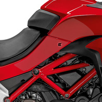 Eazi-Grip PRO - the non-abrasive high performance tank grips Ducati Multistrada 1200S PRO Tank Grips includes Tank Grips, left and right side, clear IPA cleaner Fitting Instructions Manufactured in the UK from high quality polyurethane, these traction pads are designed to be applied to the fuel tank recesses next to the riders knees and come pre-cut to size. High quality polyurethane with low profile, circular embossed surface Provides outstanding feel and movement but with superior grip when needed Suitable for race, track days and more enthusiastic road riders Non-abrasive - kind to riders leathers Cut to size - quick and easy to apply - instructions and IPA surface cleaner provided Road and track use only - not suitable for off-road use Application Peel back part of the release liner then press the tank grip firmly onto the tank and slowly peel back the liner whilst applying the grip. Push down the surface and take care not to trap air bubbles as you go. Allow 48 hours for the adhesive to fully bond before using the grips. Use an IPA cleaner to prepare surface area NO methylated spirits/petrol/lighter fluid etc. as these leave behind a thin, greasy residue. For best results ensure prepared surface is above 10oC. Also available from our store - Eazi-Grip EVO Tank Grips Eazi-Grip EVO tank grips have a soft but durable domed surface that is very easy to grip, giving the rider increased control with minimal effort, thereby reducing fatigue and and reducing wear to the riders leathers or clothing. Eazi-Grip EVO Tank Grips tend to suit the less aggressive rider (primarily road and occassional track use) and are a great alternative to more abrasive, higher priced tank grips available on the market. Designed, developed and manufactured in the U.K. Hint: Black grips look better than clear on a black tank, where clear grips can appear a little blue. Black grips can also look better than clear on a pure white tank, where clear grips can appear a little yellow. Clear grips are optimised for colours other than black and pure white. NB. Clear grips are supplied with a pink-coloured adhesive liner which makes the grips appear pink until the liner is removed. Suitable for Ducati Multistrada 1200S 2015 - current models only Part No. PRO220CL