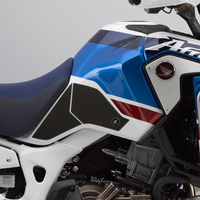 Eazi-Grip PRO - the non-abrasive high performance tank grips Honda CRF1000L2 Africa Twin Adventure Sports PRO Tank Grips includes Tank Grips, left and right side, black IPA cleaner Fitting Instructions Manufactured in the UK from high quality polyurethane, these traction pads are designed to be applied to the fuel tank recesses next to the riders knees and come pre-cut to size. High quality polyurethane with low profile, circular embossed surface Provides outstanding feel and movement but with superior grip when needed Suitable for race, track days and more enthusiastic road riders Non-abrasive - kind to riders leathers Cut to size - quick and easy to apply - instructions and IPA surface cleaner provided Road and track use only - not suitable for off-road use Application Peel back part of the release liner then press the tank grip firmly onto the tank and slowly peel back the liner whilst applying the grip. Push down the surface and take care not to trap air bubbles as you go. Allow 48 hours for the adhesive to fully bond before using the grips. Use an IPA cleaner to prepare surface area NO methylated spirits/petrol/lighter fluid etc. as these leave behind a thin, greasy residue. For best results ensure prepared surface is above 10oC. Also available from our store - Eazi-Grip EVO Tank Grips Eazi-Grip EVO tank grips have a soft but durable domed surface that is very easy to grip, giving the rider increased control with minimal effort, thereby reducing fatigue and and reducing wear to the riders leathers or clothing. Eazi-Grip EVO Tank Grips tend to suit the less aggressive rider (primarily road and occassional track use) and are a great alternative to more abrasive, higher priced tank grips available on the market. Designed, developed and manufactured in the U.K. Hint: Black grips look better than clear on a black tank, where clear grips can appear a little blue. Black grips can also look better than clear on a pure white tank, where clear grips can appear a little yellow. Clear grips are optimised for colours other than black and pure white. Suitable for Honda CRF1000L2 Africa Twin Adventure Sports 2018 - current models only Part No. PRO332BL