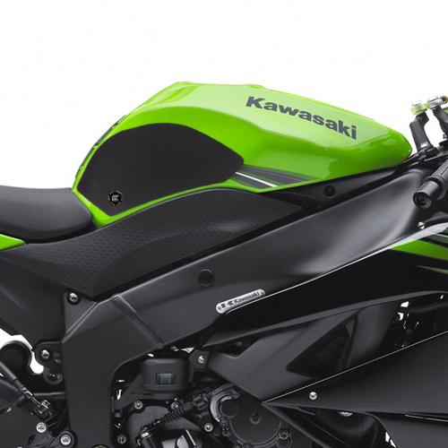 Eazi-Grip PRO - the non-abrasive high performance tank grips Kawasaki Ninja ZX-6R PRO Tank Grips includes Tank Grips, left and right side, black IPA cleaner Fitting Instructions Manufactured in the UK from high quality polyurethane, these traction pads are designed to be applied to the fuel tank recesses next to the riders knees and come pre-cut to size. High quality polyurethane with low profile, circular embossed surface Provides outstanding feel and movement but with superior grip when needed Suitable for race, track days and more enthusiastic road riders Non-abrasive - kind to riders leathers Cut to size - quick and easy to apply - instructions and IPA surface cleaner provided Road and track use only - not suitable for off-road use Application Peel back part of the release liner then press the tank grip firmly onto the tank and slowly peel back the liner whilst applying the grip. Push down the surface and take care not to trap air bubbles as you go. Allow 48 hours for the adhesive to fully bond before using the grips. Use an IPA cleaner to prepare surface area NO methylated spirits/petrol/lighter fluid etc. as these leave behind a thin, greasy residue. For best results ensure prepared surface is above 10oC. Also available from our store - Eazi-Grip EVO Tank Grips Eazi-Grip EVO tank grips have a soft but durable domed surface that is very easy to grip, giving the rider increased control with minimal effort, thereby reducing fatigue and and reducing wear to the riders leathers or clothing. Eazi-Grip EVO Tank Grips tend to suit the less aggressive rider (primarily road and occassional track use) and are a great alternative to more abrasive, higher priced tank grips available on the market. Designed, developed and manufactured in the U.K. Hint: Black grips look better than clear on a black tank, where clear grips can appear a little blue. Black grips can also look better than clear on a pure white tank, where clear grips can appear a little yellow. Clear grips are optimised for colours other than black and pure white. Suitable for Kawasaki Ninja ZX-6R 2009 - 2013 models only Part No. PRO407BL