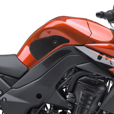 Eazi-Grip PRO - the non-abrasive high performance tank grips Kawasaki Z1000 PRO Tank Grips includes Tank Grips, left and right side, black IPA cleaner Fitting Instructions Manufactured in the UK from high quality polyurethane, these traction pads are designed to be applied to the fuel tank recesses next to the riders knees and come pre-cut to size. High quality polyurethane with low profile, circular embossed surface Provides outstanding feel and movement but with superior grip when needed Suitable for race, track days and more enthusiastic road riders Non-abrasive - kind to riders leathers Cut to size - quick and easy to apply - instructions and IPA surface cleaner provided Road and track use only - not suitable for off-road use Application Peel back part of the release liner then press the tank grip firmly onto the tank and slowly peel back the liner whilst applying the grip. Push down the surface and take care not to trap air bubbles as you go. Allow 48 hours for the adhesive to fully bond before using the grips. Use an IPA cleaner to prepare surface area NO methylated spirits/petrol/lighter fluid etc. as these leave behind a thin, greasy residue. For best results ensure prepared surface is above 10oC. Also available from our store - Eazi-Grip EVO Tank Grips Eazi-Grip EVO tank grips have a soft but durable domed surface that is very easy to grip, giving the rider increased control with minimal effort, thereby reducing fatigue and and reducing wear to the riders leathers or clothing. Eazi-Grip EVO Tank Grips tend to suit the less aggressive rider (primarily road and occassional track use) and are a great alternative to more abrasive, higher priced tank grips available on the market. Designed, developed and manufactured in the U.K. Hint: Black grips look better than clear on a black tank, where clear grips can appear a little blue. Black grips can also look better than clear on a pure white tank, where clear grips can appear a little yellow. Clear grips are optimised for colours other than black and pure white. Suitable for Kawasaki Z1000 2010 - 2013 models only Part No. PRO417BL